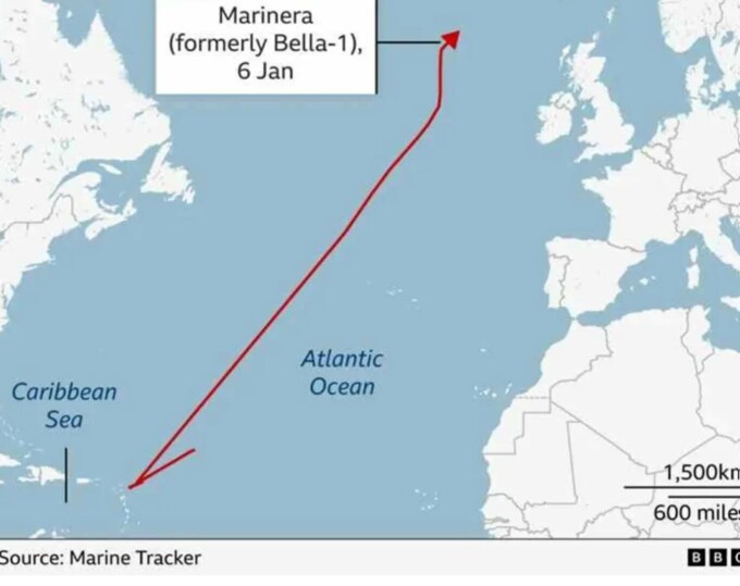 Acest petrolier, denumit iniţial "Bella 1", se află sub sancţiuni americane din 2024 pentru presupuse legături cu Iranul şi cu gruparea şiită libaneză Hezbollah. După ce a fost redenumit recent "Marinera", acest petrolier a arborat pavilion rusesc. Nava a fost localizată miercuri dimineaţă în zona economică exclusivă a Islandei, conform datelor de monitorizare a traficului maritim.