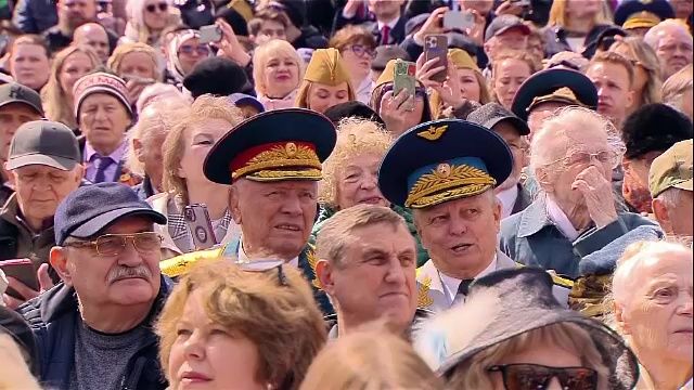 „Astăzi, suntem cu toţii uniţi de sentimente de bucurie şi tristeţe, mândrie şi recunoştinţă, admiraţie faţă de generaţia care a înfrânt nazismul şi a câştigat libertatea şi pacea pentru întreaga omenire cu preţul a milioane de vieţi. Păstrăm cu fidelitate memoria acestor evenimente istorice şi triumfătoare. Şi, ca moştenitori ai învingătorilor, sărbătorim ziua de 9 mai ca pe o sărbătoare de familie, ca pe cea mai importantă pentru ţară, pentru întreg poporul, pentru fiecare familie, pentru fiecare dintre noi”, a spus Putin în introducerea alocuţiunii sale.