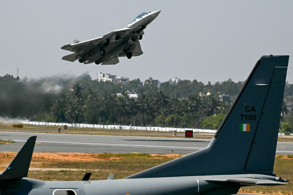 Rusia şi-a dezvăluit avionul de vânătoare invizibil pe radar de generaţia a cincea de tip Suhoi 57 (Su-57) al United Aircraft Corporation, la Dubai Airshow 2025, unul dintre cele mai mari saloane aeronautice din lume.