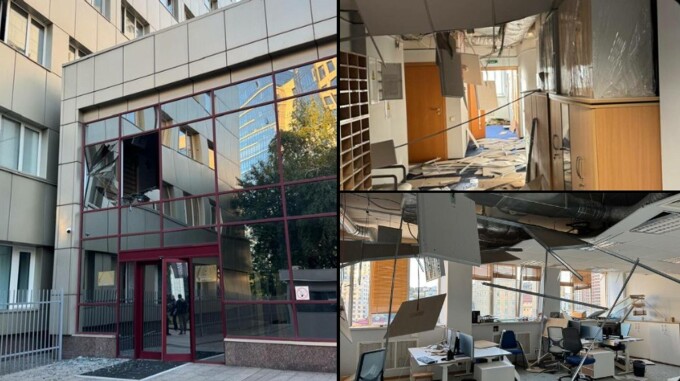 "UE nu se va lăsa intimidată. Agresiunea rusă nu face decât să ne întărească hotărârea de a fi alături de Ucraina şi de poporul său", a declarat el, care a distribuit o fotografie a unui birou cu geamuri sparte şi multiple daune.