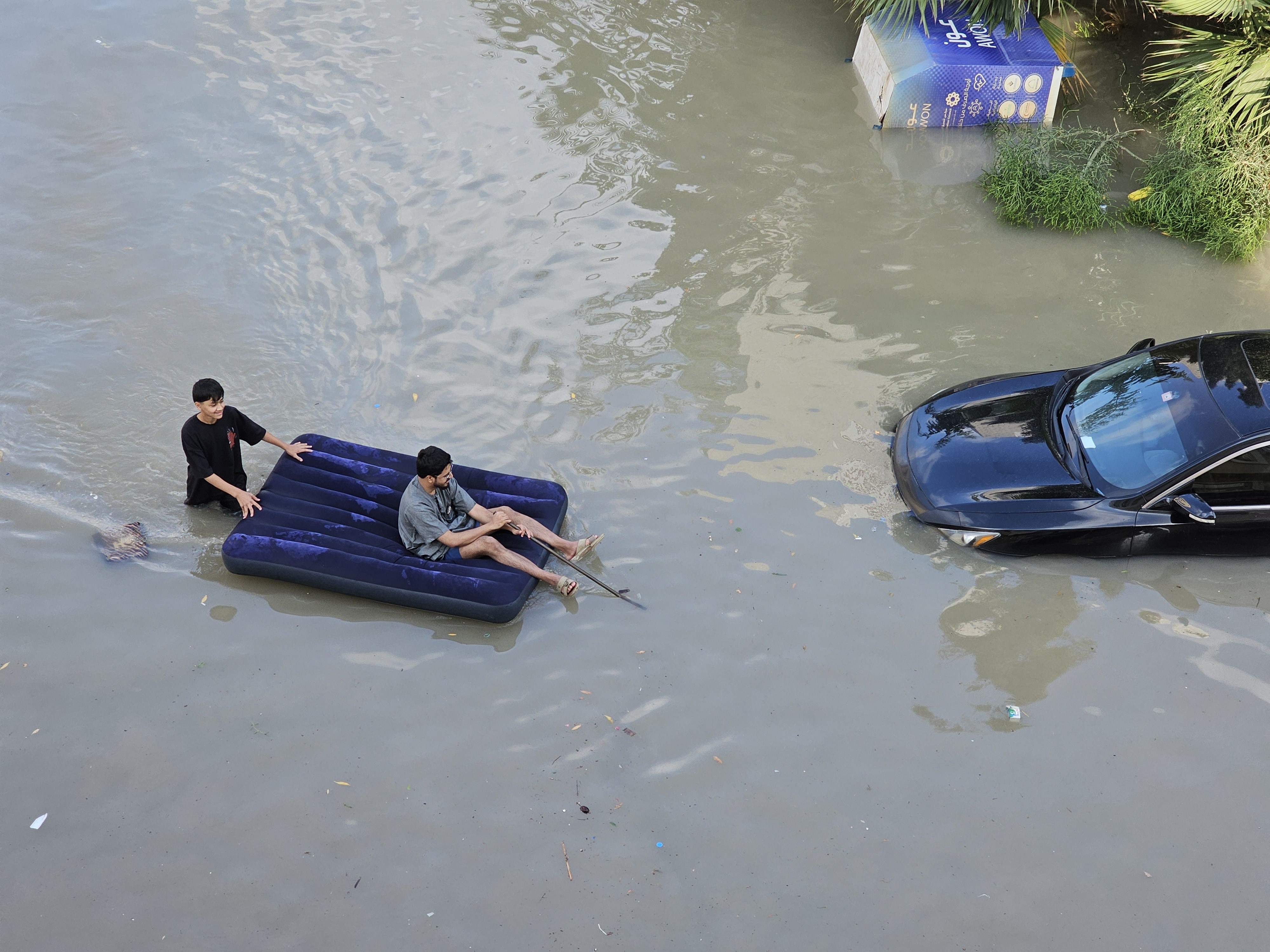 Pe măsură ce pistele aeroportului au fost acoperite de apă, zborurile au fost anulate la unul dintre cele mai aglomerate aeroporturi din lume. Mall-urile fastuoase au fost inundate, apa infiltrându-se prin plafoane, iar lifturile din zgârie-nori au încetat să funcționeze, forțând locuitorii să urce zeci de etaje pe scări. Imposibilitatea de a ajunge acasă i-a determinat pe unii șoferi să doarmă în mașini din cauza drumurilor blocate.