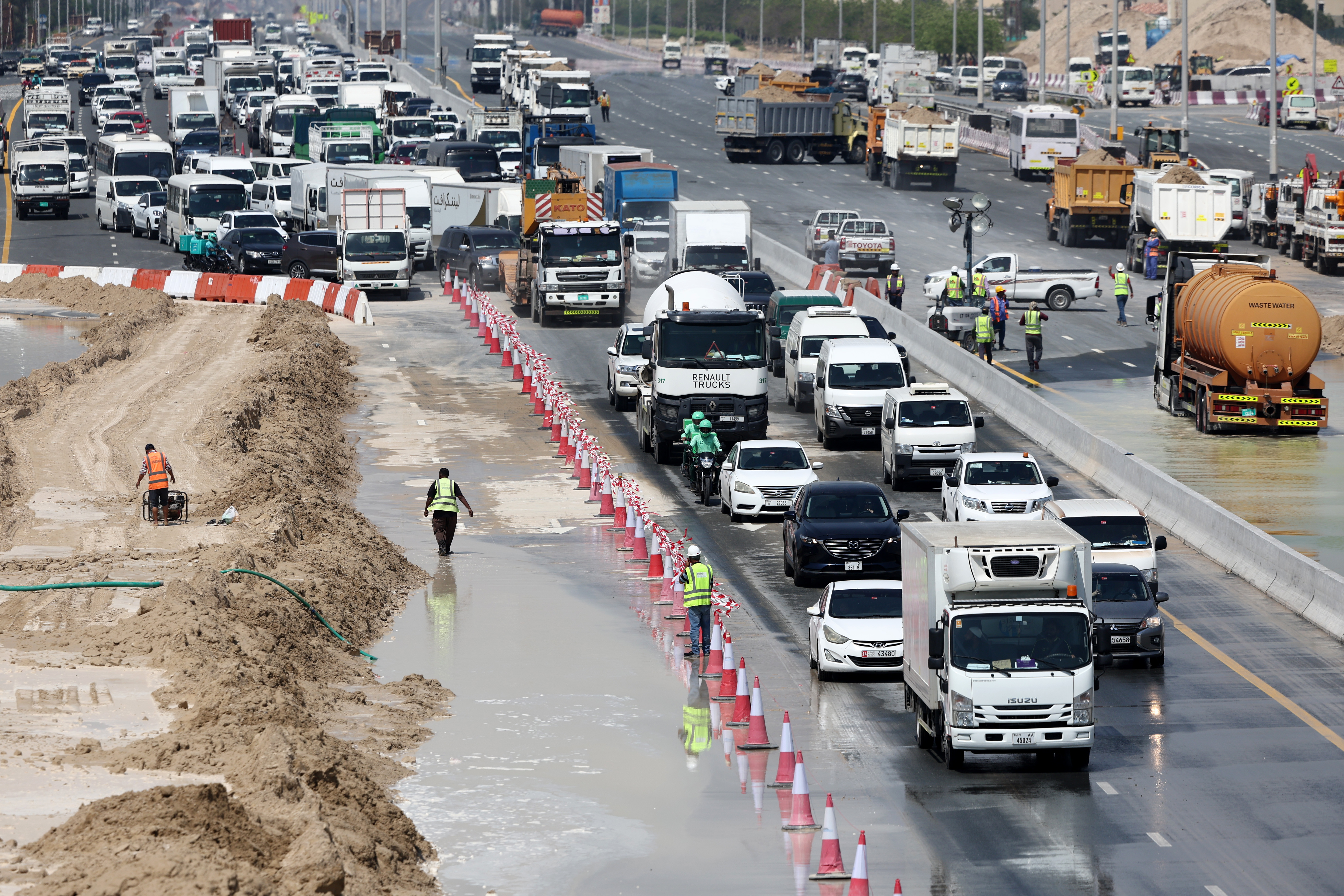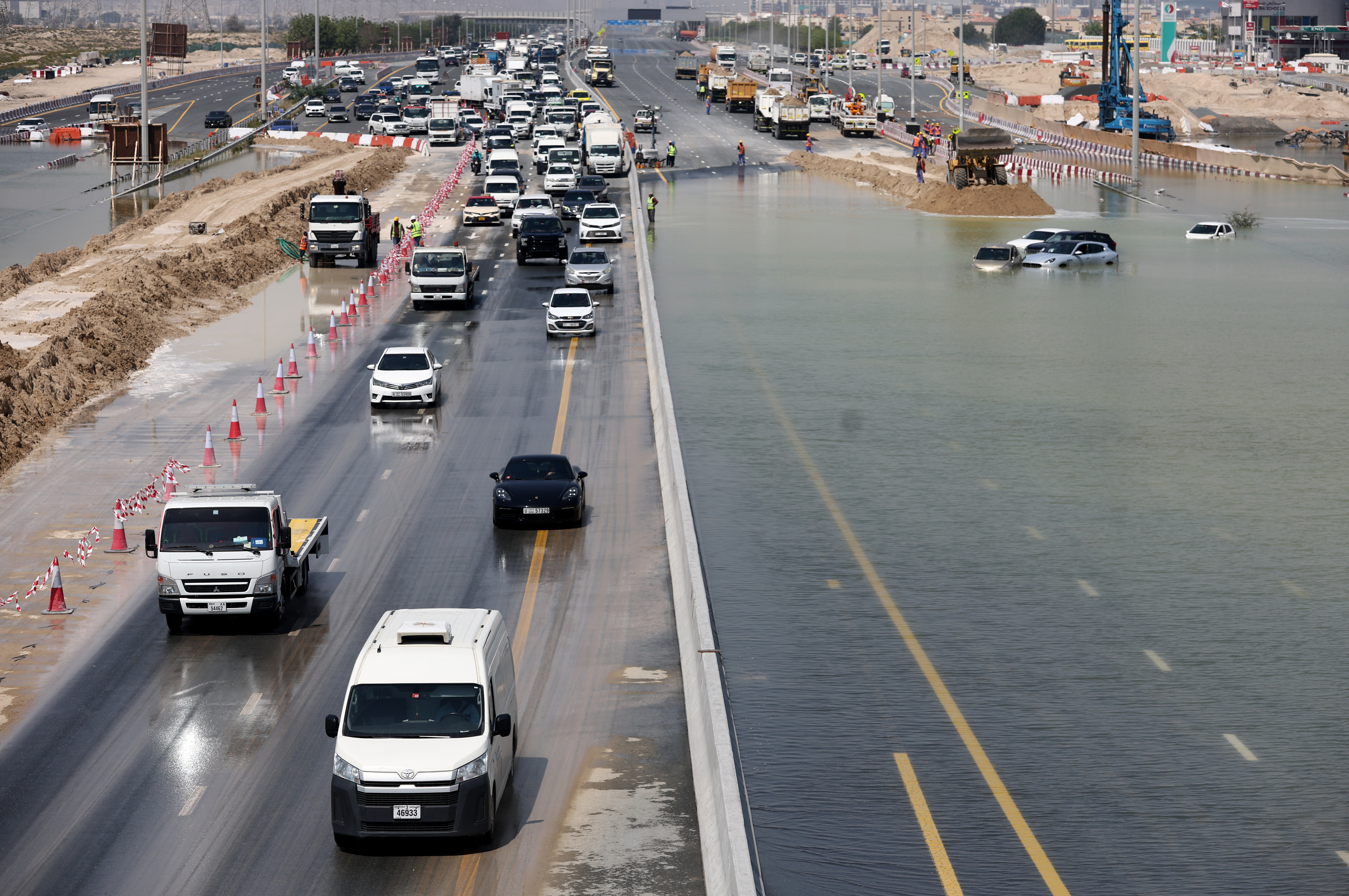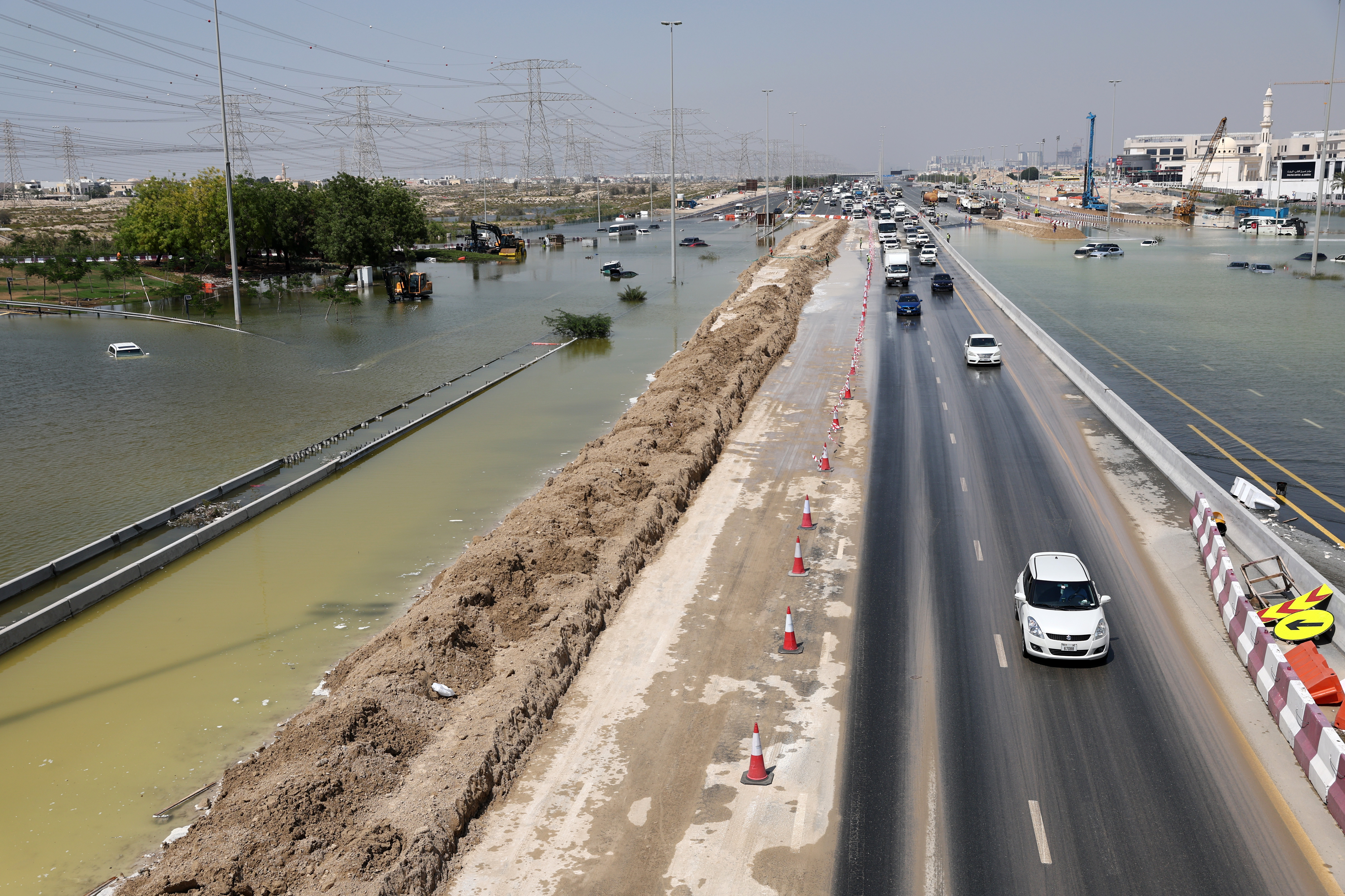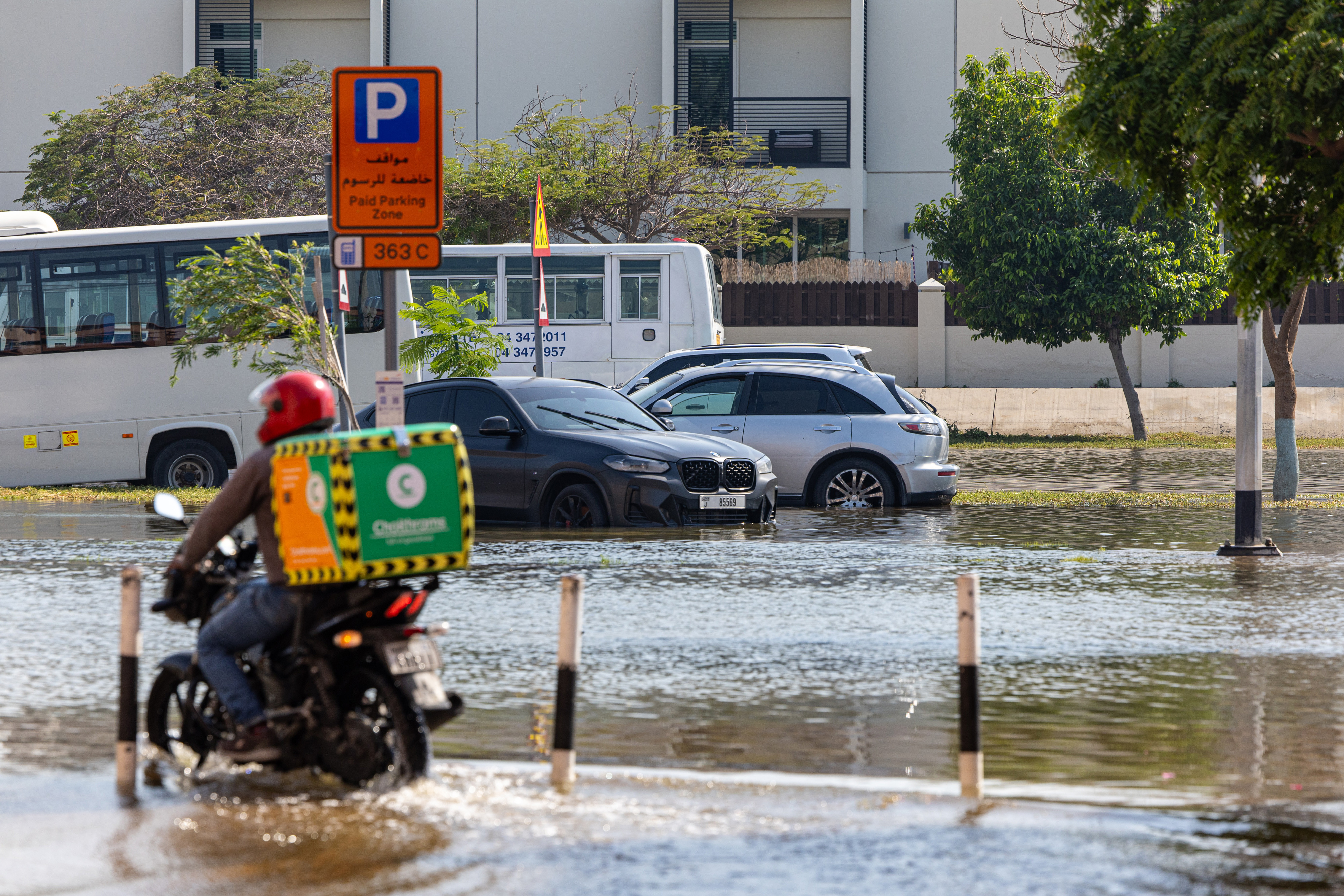 Pe Sheikh Zayed Road, o arteră cu 16 benzi din Dubai, mărginită de zgârie-nori strălucitori de sticlă, șoferii au raportat blocări aproape complete în unele zone, cu mașini care circulau pe contrasens pentru a scăpa de ambuteiaje. În districtul financiar, sediul operațiunilor regionale ale unora dintre cele mai mari bănci din lume, mașini de lux au fost văzute aproape complet sub apă, în timp ce străzile se transformau în lacuri. În Marina Dubai, o destinație populară pentru vizitatorii occidentali și ruși, mobilierul de la restaurantele și cafenelele învecinate a fost luat de curent.