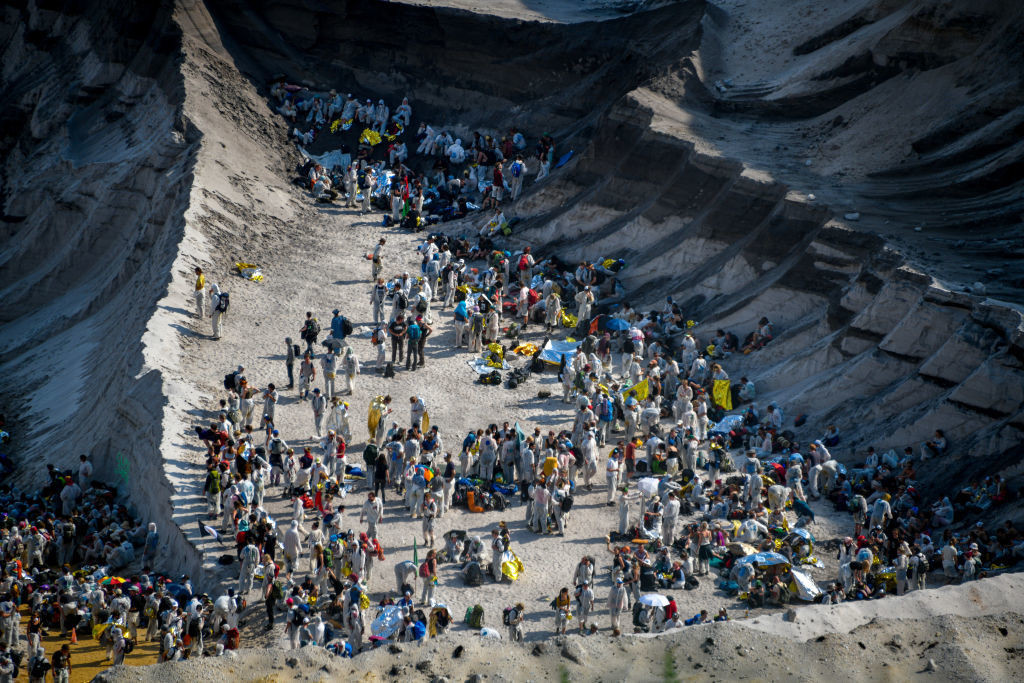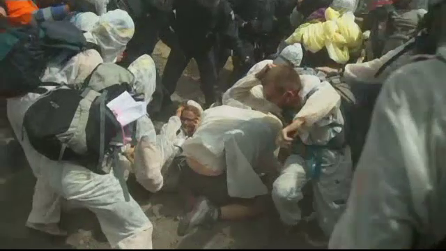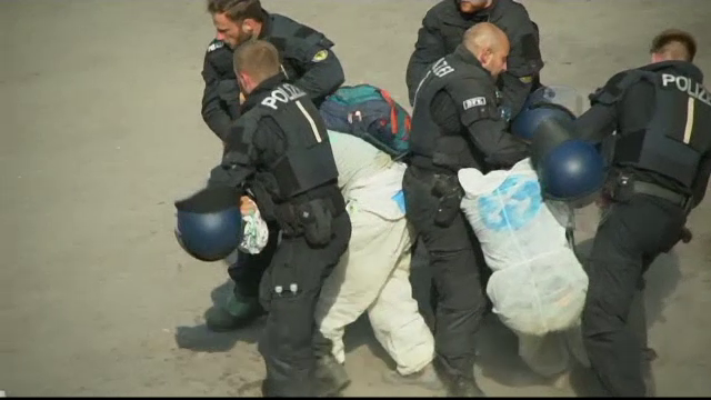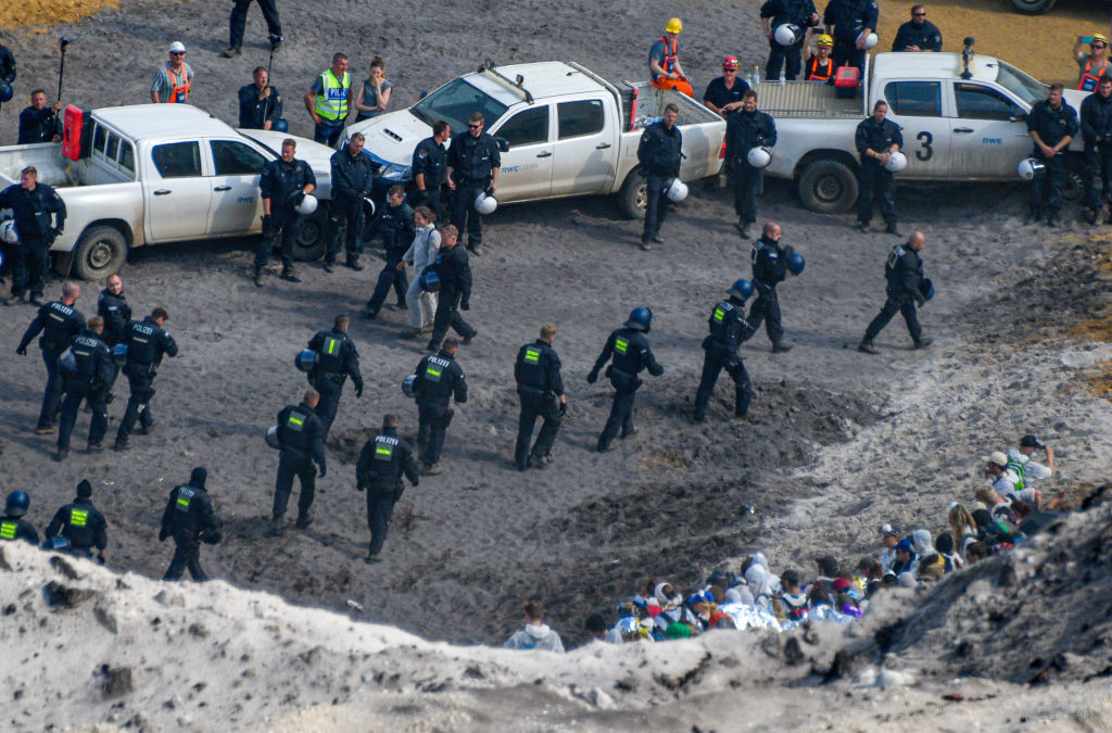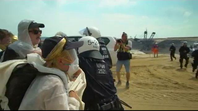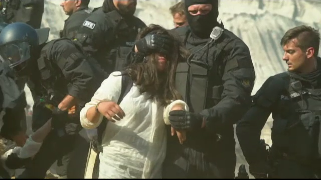 Zeci dintre militanţi au sfârşit în arest. Ecologiştii sunt nemulţumiţi de săpăturile neîncetate care au loc la mina de cărbune, spunând că există destul dioxid de carbon în aer.