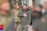 Însoţit de gărzi de corp înarmate, dar fără să poarte cască de protecție, Zelenski a umblat prin oraş și i-a salutat pe localnicii apăruți la ferestre.