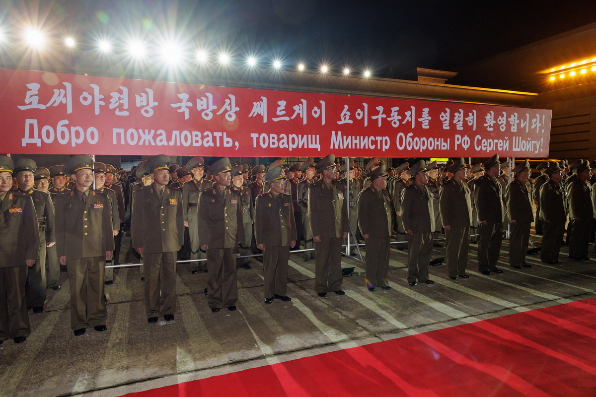 Serghei Şoigu a fost primit de către ministrul nord-coreean al Apărării Kang Sun Nam, iar fotografii publicate de ziarul oficial Rodong Sinmun surprind sute de militari în uniforma Armatei Populare Coreene aliniaţi de-a lungul aeroportului, agitând pancarte cu mesaje de bun venit adresate ruşilor.
