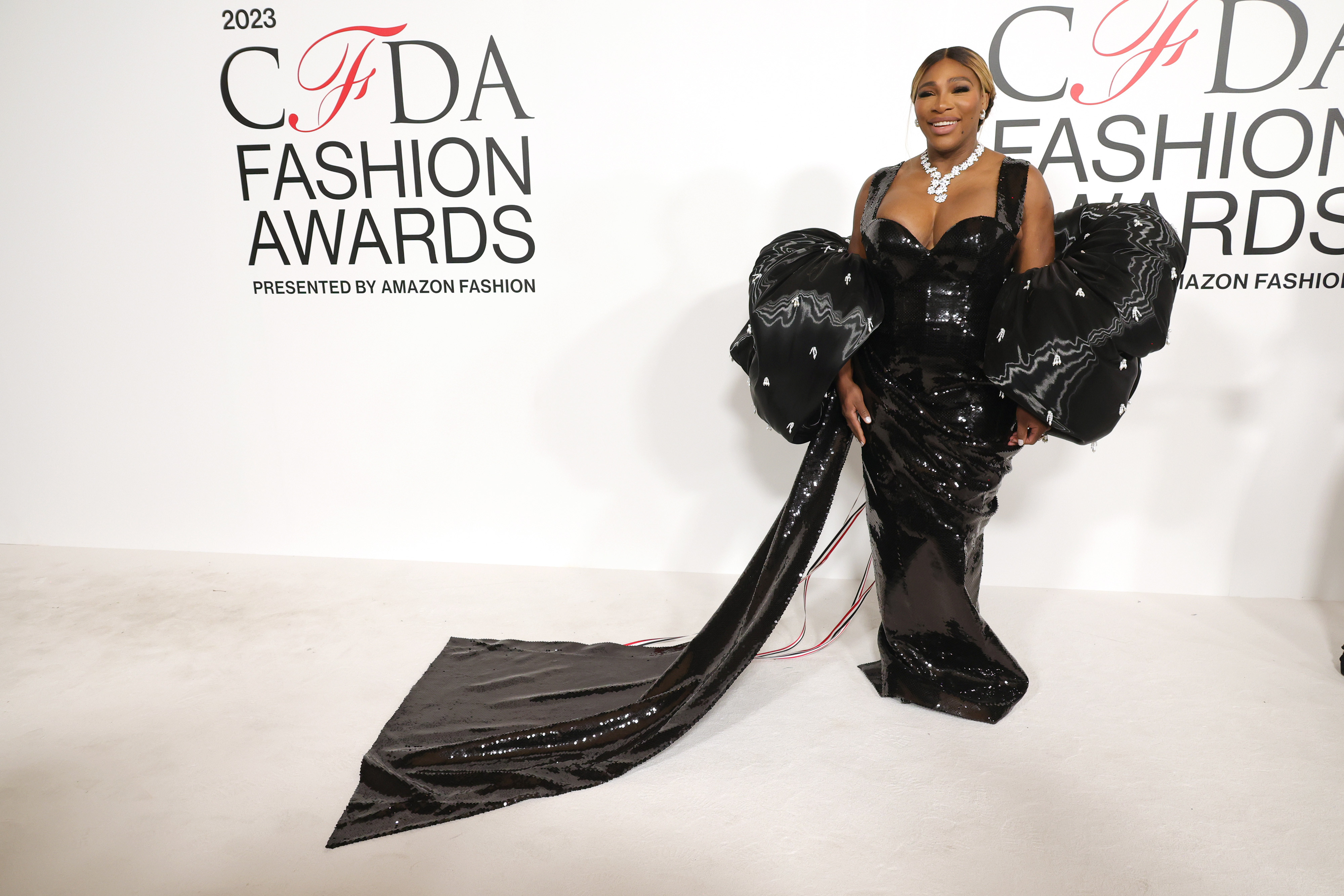 Campioana de 23 de ori la simplu de Grand Slam a făcut ravagii pe covorul roșu de la Muzeul American de Istorie Naturală, purtând o rochie neagră din paiete personalizată, creată de Thom Browne, președintele CFDA.