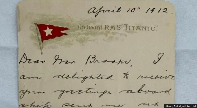 Scrisoarea era datată 10 aprilie 1912, ziua în care el s-a îmbarcat pe Titanic, la Southampton, şi cu cinci zile înainte ca nava să se scufunde, după ce a lovit un aisberg, în Atlanticul de Nord.