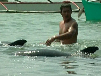 Sute de delfini dezorientati, salvati de pescarii filipinezi