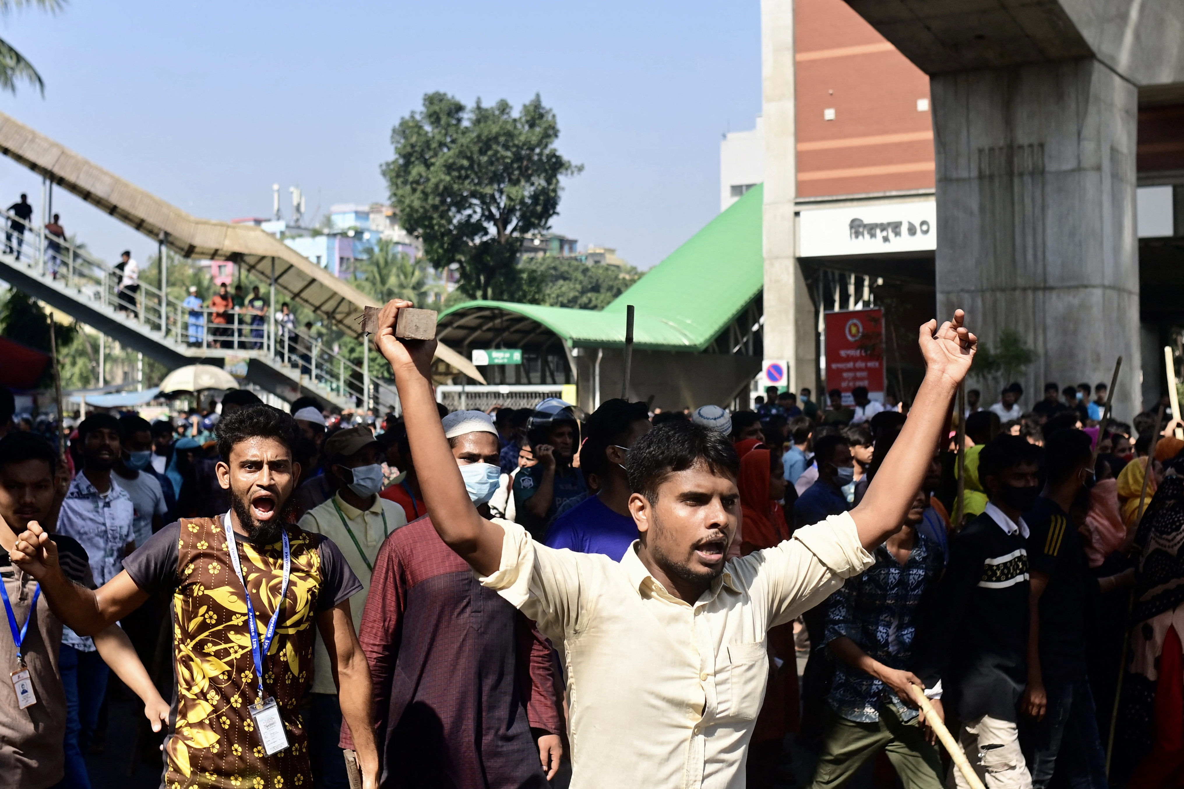 Câteva mii de muncitori au blocat drumurile din cartierele industriale din jurul capitalei. La Gazipur, poliţiştii „au tras tiruri cu gaze lacrimogene şi grenade asurzitoare asupra a aproape 1.000„ de muncitori, care „au fost dispersaţi şi au părăsit locul în linişte„, a declarat pentru AFP un responsabil din cadrul poliţiei, Abu Siddique.