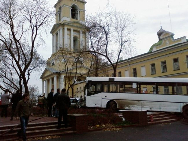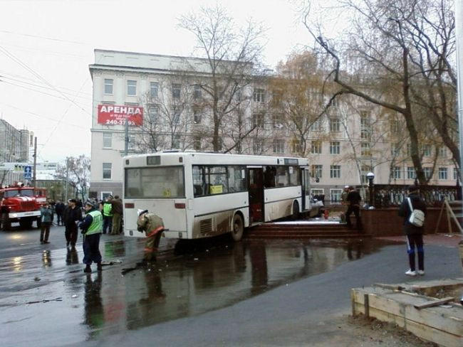 Autobuzul s-a oprit, cu greu, in scarile unei zone pietonale suprainaltate.