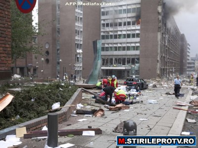 La Oslo, autoritatile au cerut populatiei sa nu iasa din case decat daca este absolut nevoie si sa evite zonele centrale ale orasului. Bucati de metale rupte, cioburi de sticla si fragmente de cauciuc acopereau centrul capitalei norvegiene vineri seara, dupa explozia care a ucis sapte oameni.