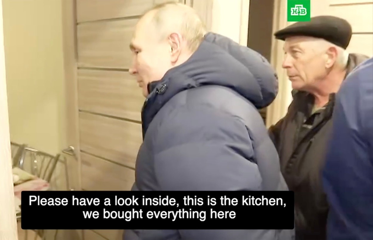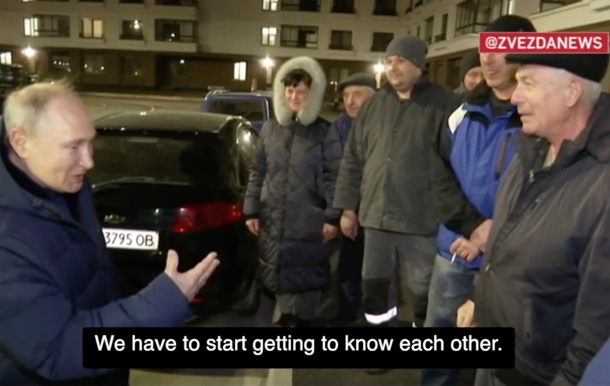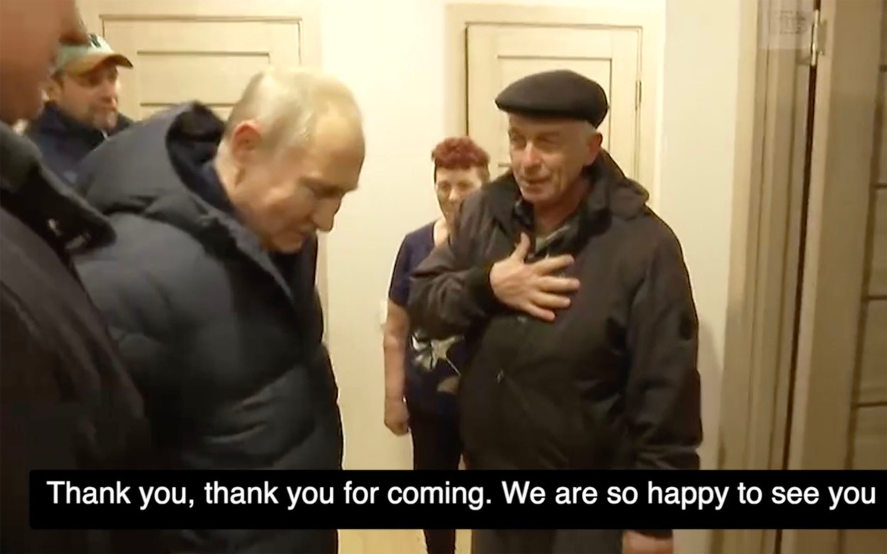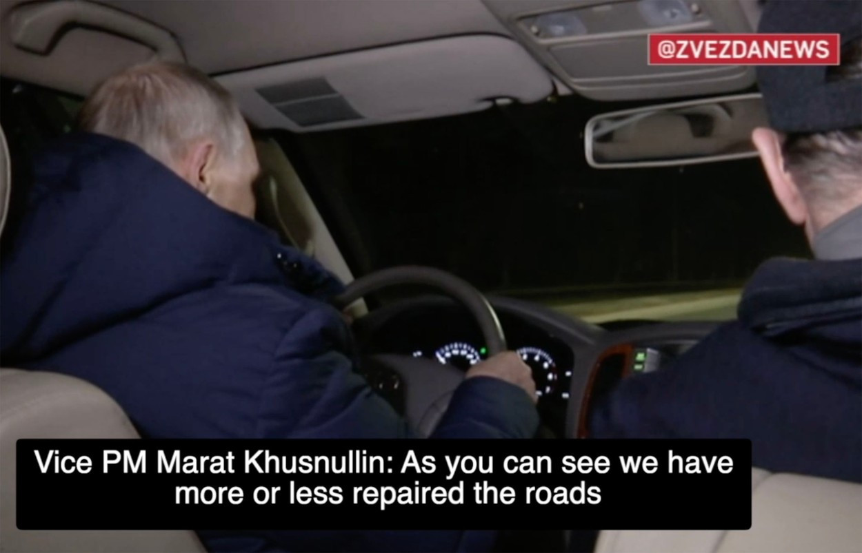 Reporterii BBC au refăcut o parte din traseul urmat de Putin. Un videoclip difuzat de presa rusă îl arată pe președintele rus discutând cu un însoțitor, în timp ce se îndreaptă spre o sală de evenimente. Kremlinul a transmis că vizita a avut loc sâmbătă noaptea. Putin a decis „în mod spontan” să viziteze orașul.