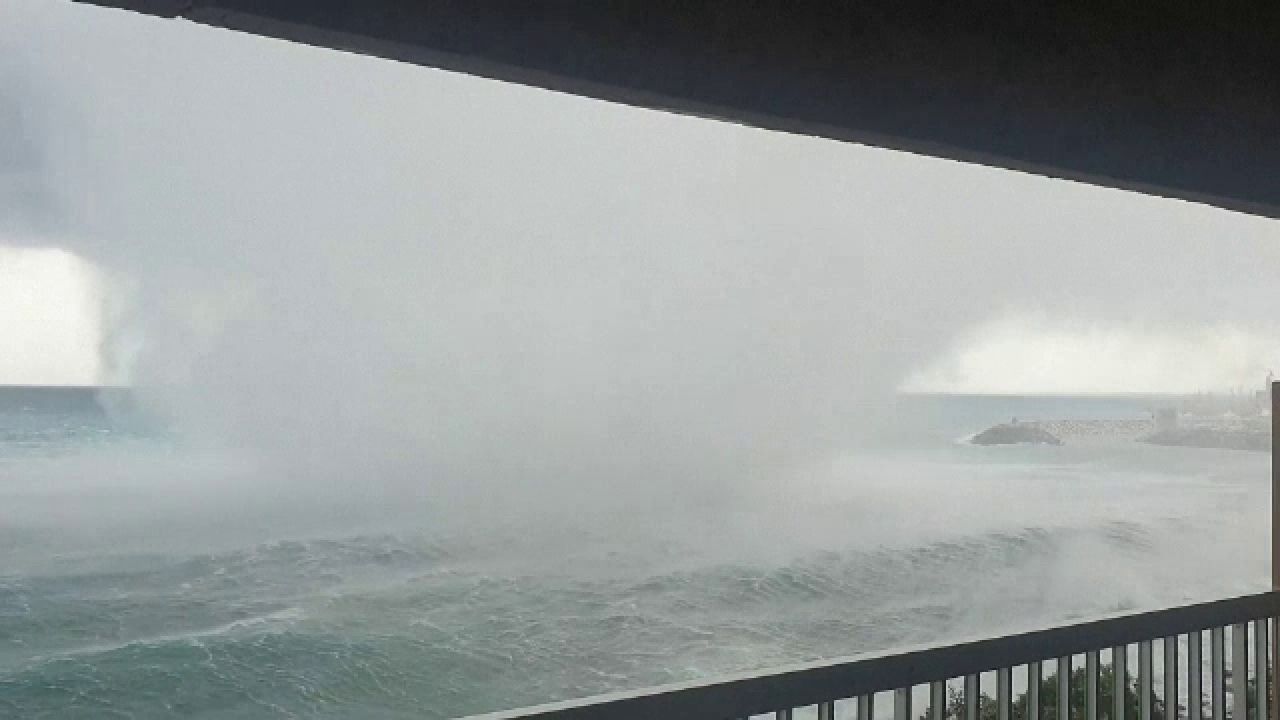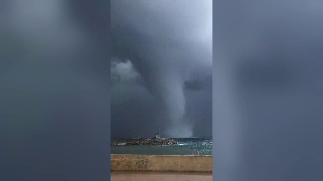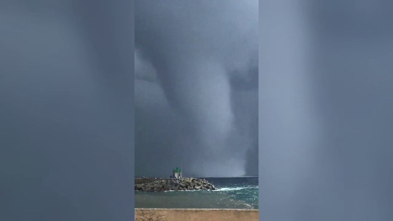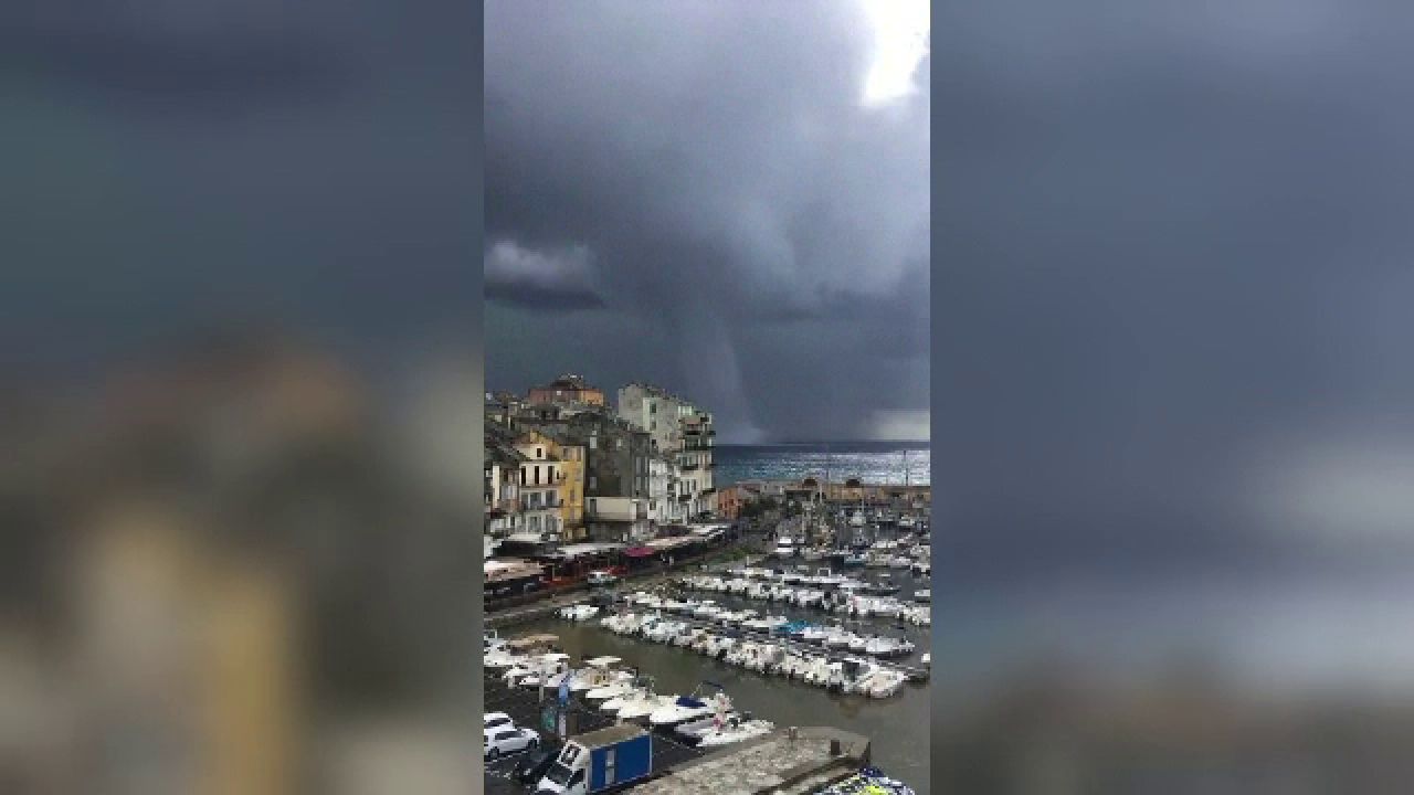 Fenomenul, numit „trombă marină", a fost filmat de localnicii din orașul Bastia.