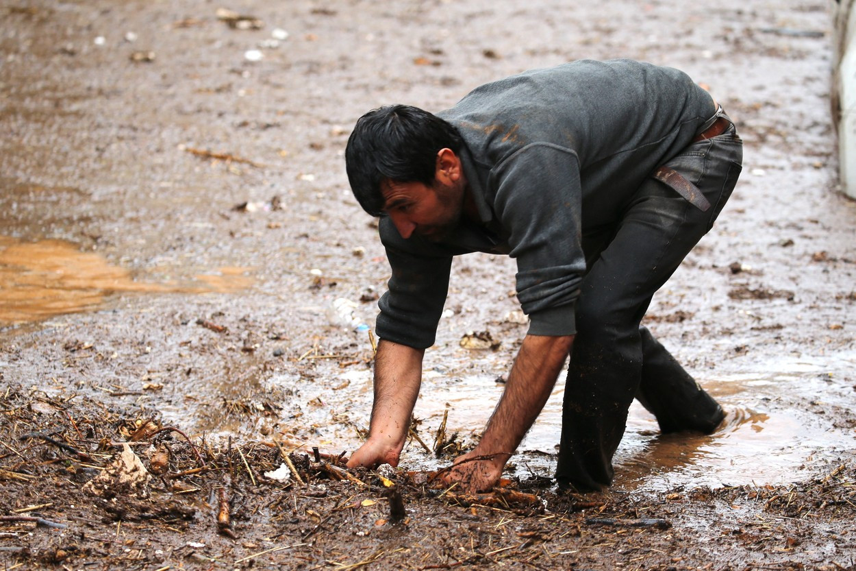 Mai la sud, în districtul Iskenderun din provincia Hatay, apa a inundat corturile care adăposteau supravieţuitori ai cutremurului.