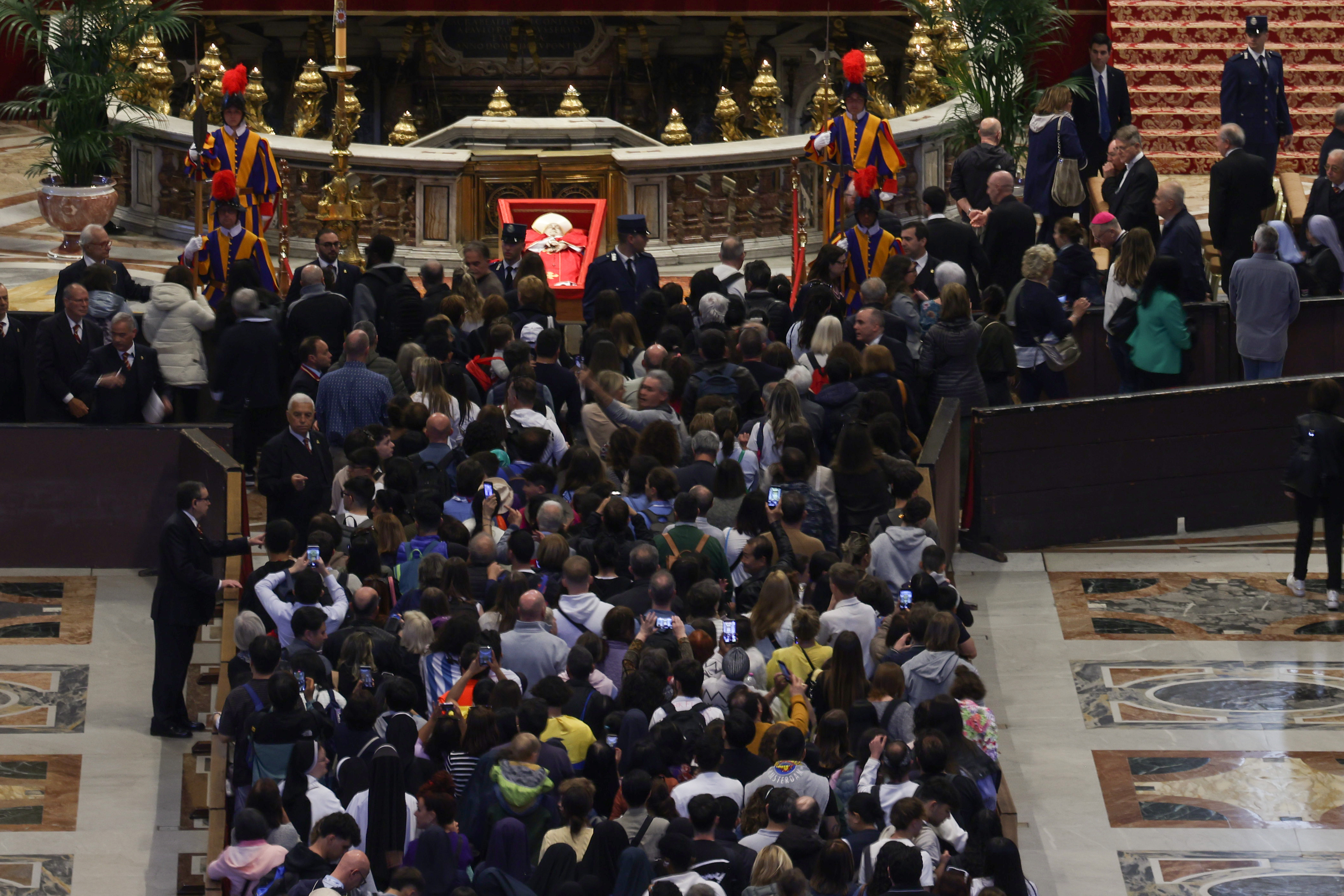 Începând de miercuri, peste 128.000 de persoane şi-au luat adio de la Papa Francisc, ale cărui rămăşiţe sunt depuse în bazilica Sfântul Petru.