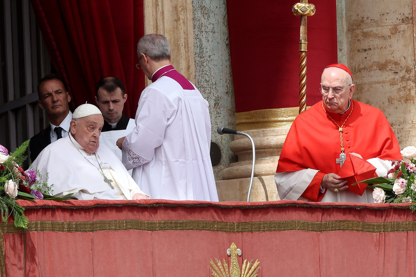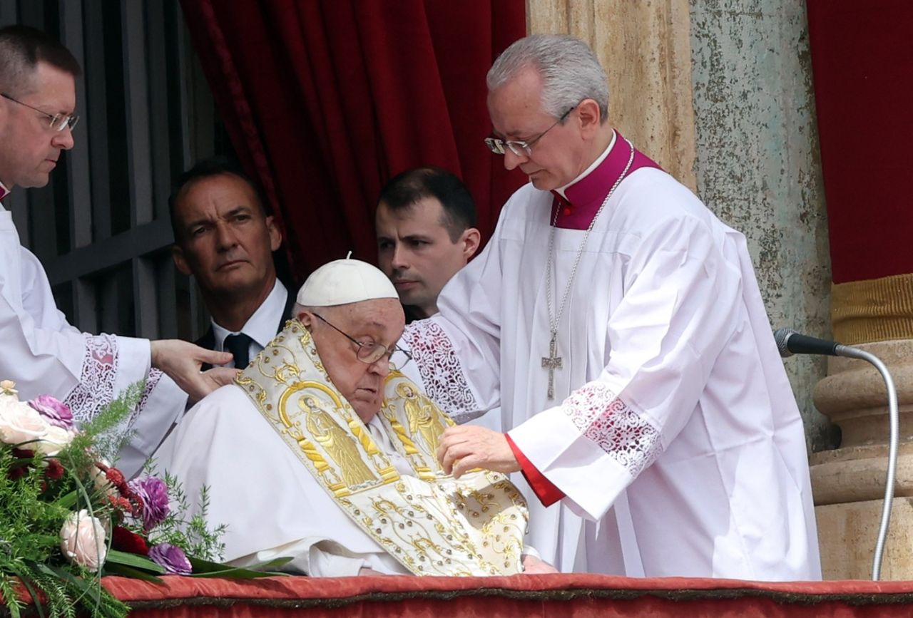 "Good morning and happy Easter." The moment Pope Francis appears at the balcony overlooking St. Peter's Square before handing over his Urbi et Orbi to the master of ceremonies to read. pic.twitter.com/3ALrD9AY5A