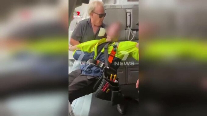 Imaginile difuzate de o televiziune australiană îl arată când era ținut de un pasager, iar un tehnician și pilotul îi goleau centura de scule.