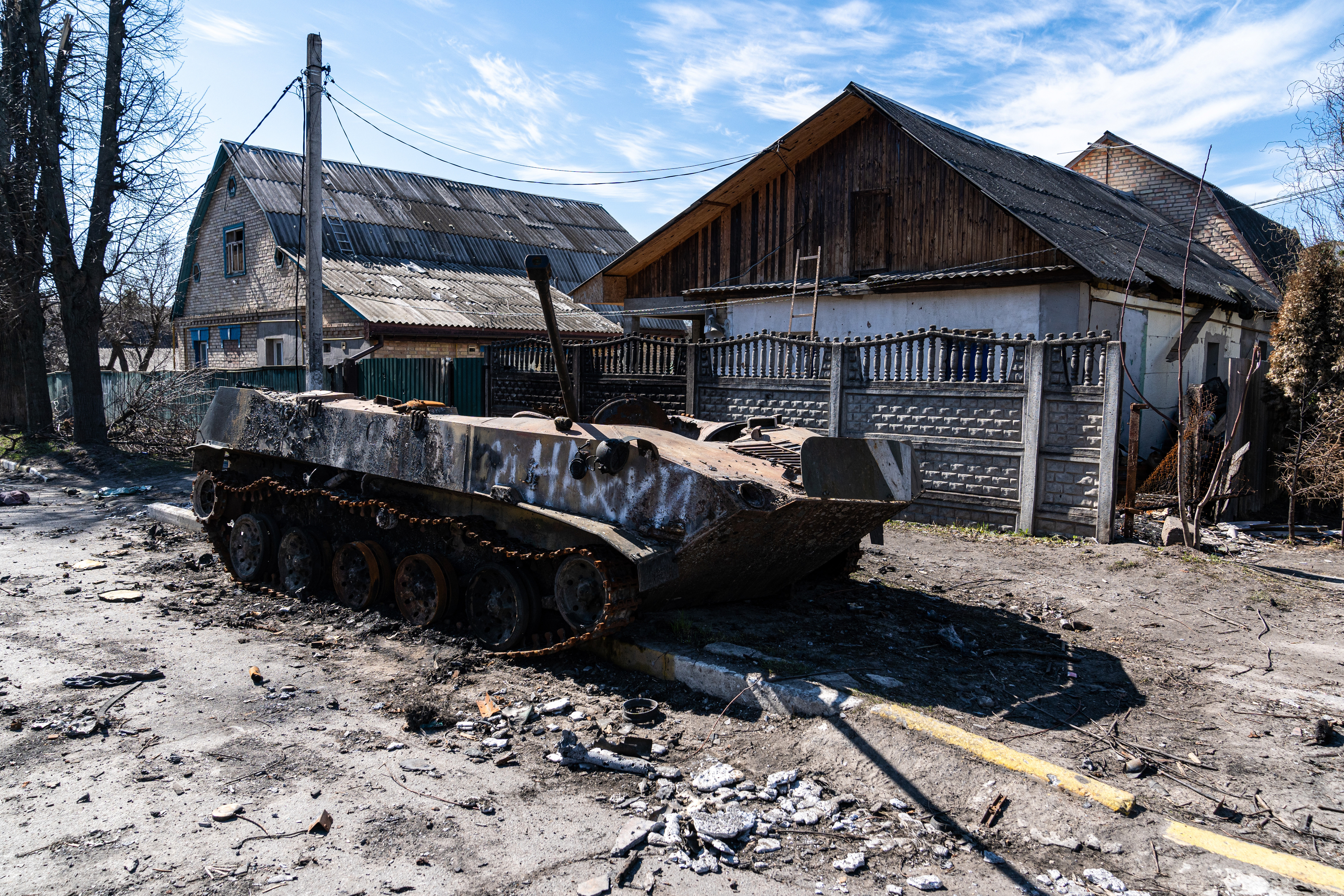 Chiar după colț de casa familiei Fedorovs se află strada Vokzalna, unde o coloană de vehicule militare rusești a rămas blocată în timpul luptelor intense din martie anul trecut.
