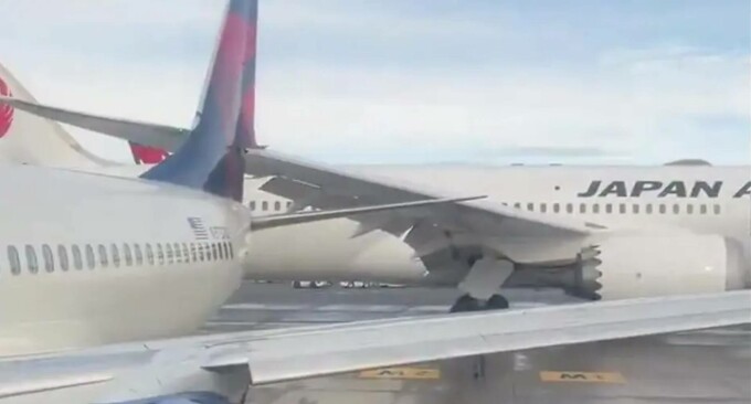 JUST IN: Japan Airlines plane hits Delta Air Lines jet while taxiing at Seattle Airport pic.twitter.com/ZfuMcysCkz