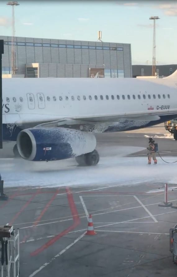 „Un incendiu a izbucnit într-un motor al unui avion de pasageri care a fost oprit la poarta de îmbarcare. Focul este stins. Pasagerii evacuați. Nimeni nu a fost rănit,” a scris poliția.