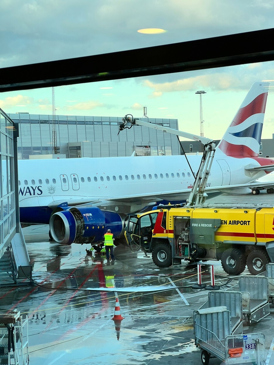 Surse din partea British Airways (BA) au spus pentru MailOnline că a fost observat fum venind din avionul companiei din cauza „frânelor fierbinți”, în jurul orei 20, când avionul se afla la poartă.