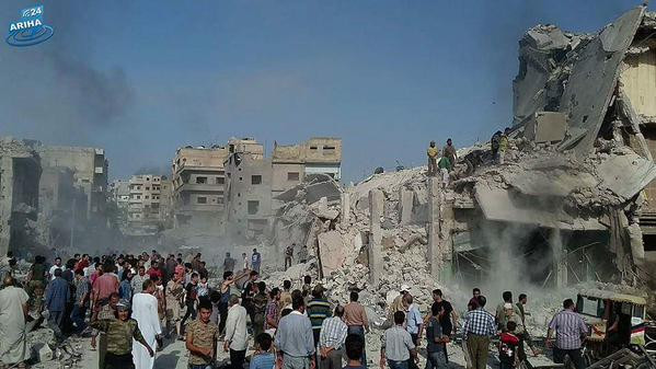 Cel putin 31 de morti si 60 de raniti dupa ce un avion militar s-a prabusit in centrul unui oras din Siria. VIDEO
