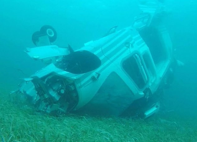 Poliția din Bahamas a publicat o fotografie cu epava elicopterului, pe fundul Oceanului (n.r. vezi galerie foto)