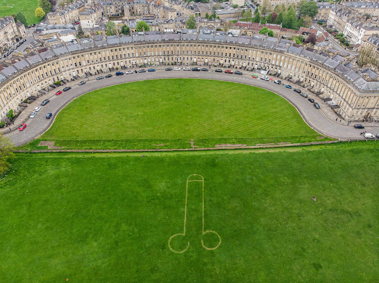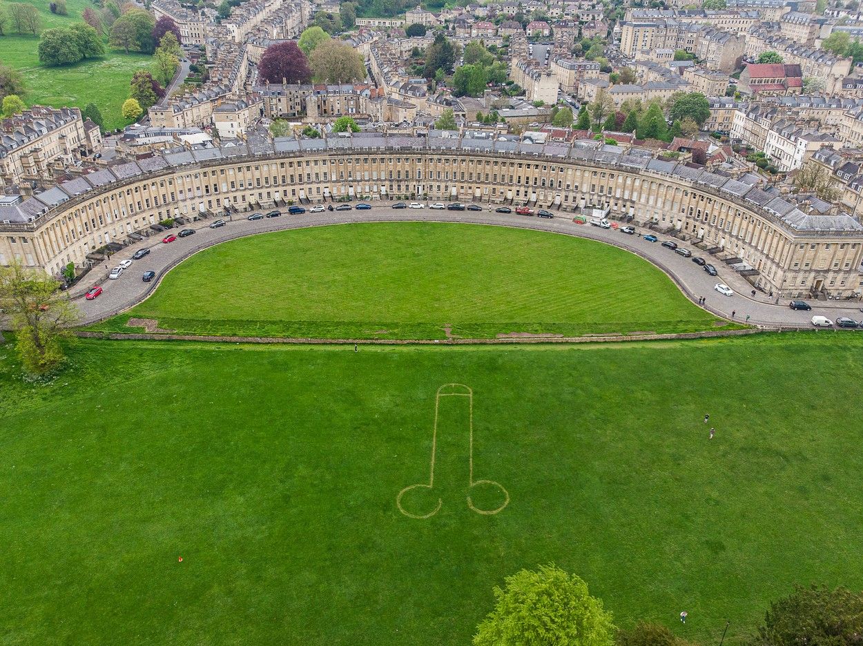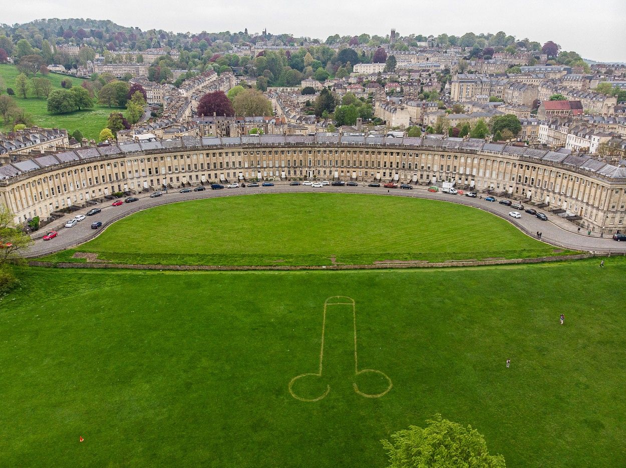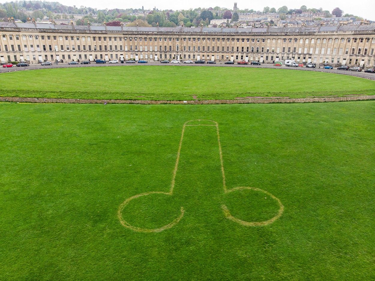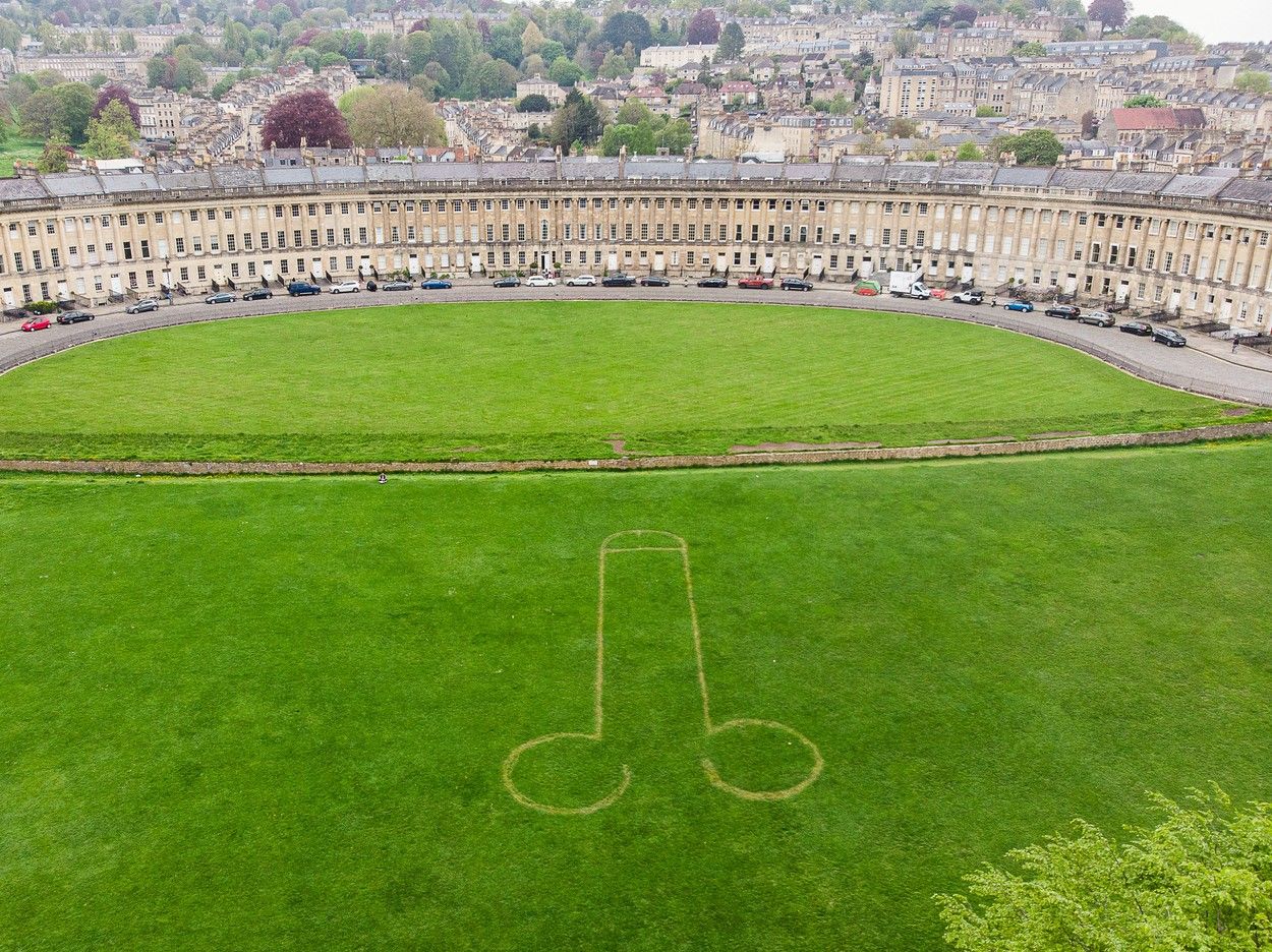 Desenul obscen a apărut peste noapte pe iarba din fața luxosului Royal Crescent din Bath, joi (4 mai). În momentul de față, nimeni nu știe cine este responsabil.