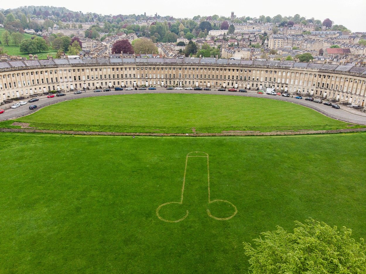 „Opera de artă” a apărut cu doar două zile înainte de marea petrecere de încoronare, care se spune că ar fi fost planificată pe terenul de la The Royal Crescent, cunoscut la nivel mondial drept "peluza perfectă".