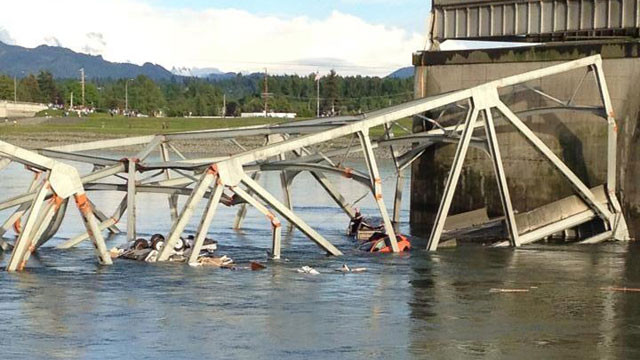 Un pod care traverseaza raul Skagit in Washington s-a prabusit joi seara aruncand in apa cateva masini in care se aflau mai multe persoane.