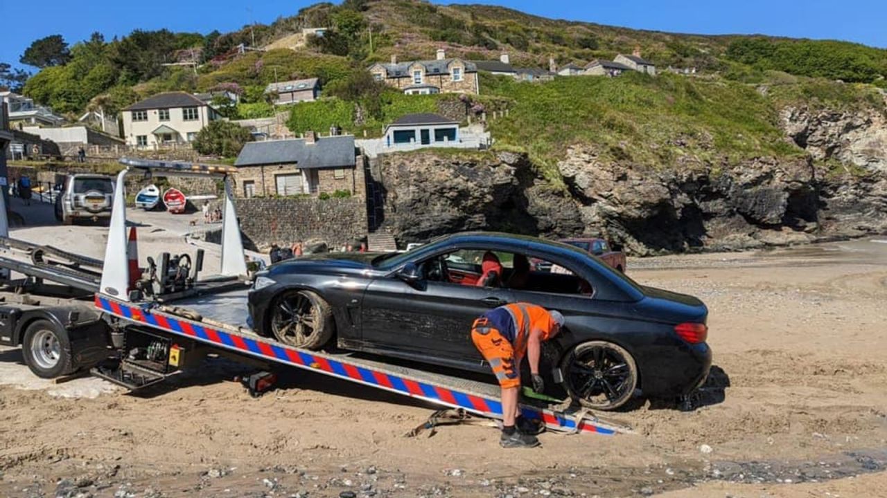 Deși nu este clar cui aparține mașina sau de ce a fost lăsată pe plajă, St Agnes Coastguard Search & Rescue Team a reușit în cele din urmă să o scoată din mare - la aproape două ore după ce au fost chemați.