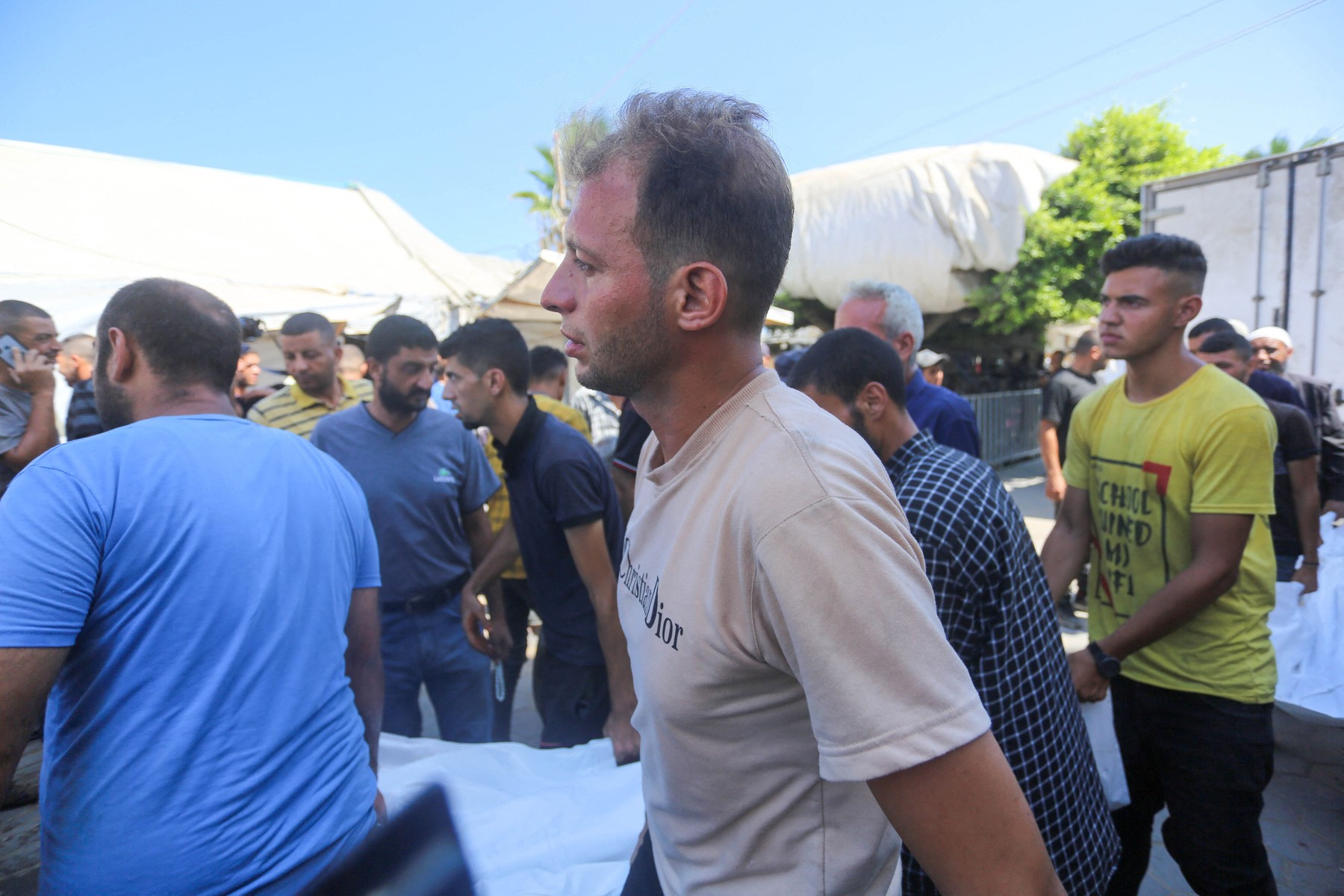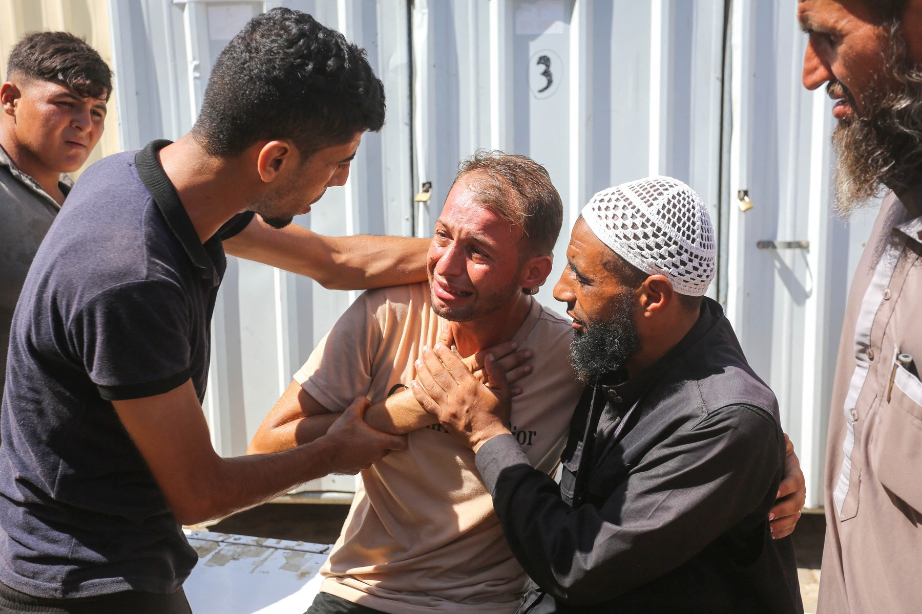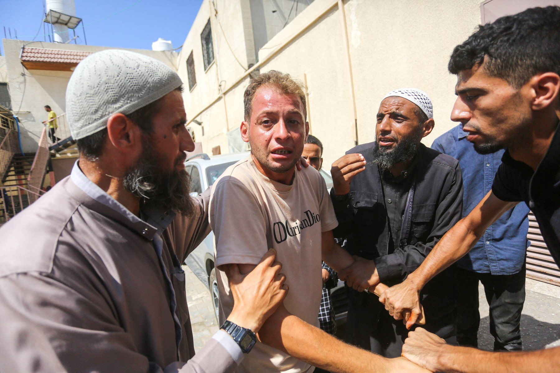 Câteva imagini l-au surprins pe tatăl îndurerat cum era consolat de localnici, în timp ce plângea și ținea în mâini certificatele de naștere ale gemenilor.