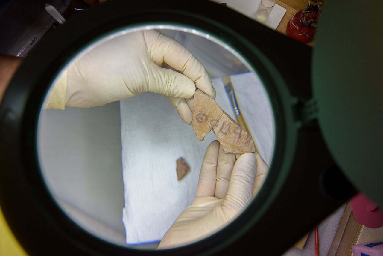 Inscripţia, scrisă în canaanită, a fost realizată cu cerneală pe vasul de lut. Aceasta conţine numele lui Ierubaal, care a fost un conducător militar, judecător şi profet.
