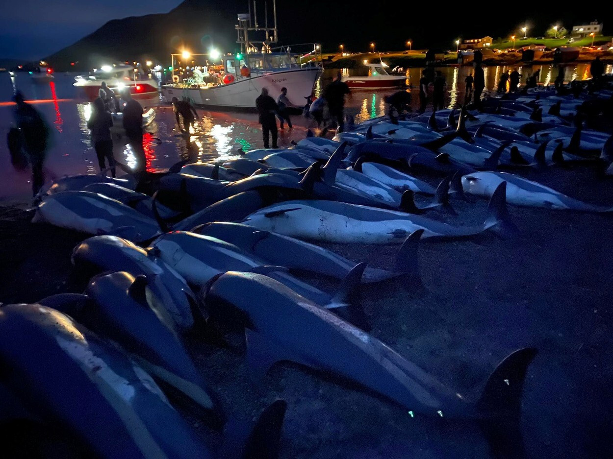 Ambarcaţiunile au condus, duminică, delfinii cu coastă albă din Atlantic, spre un golf de pe malul insulei Skalabotnur. Acolo, vânătorii au așteptat să omoare mamiferele cu cârlige, cuțite și sulițe, ca parte a tradiției locale.