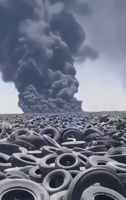 DEVELOPING: The world's largest tire dump at the Al Sulabiya tire site in Kuwait is on fire and is visible on satellite images. The tire graveyard is estimated to have 7 million tires.pic.twitter.com/ESApEcP6k6