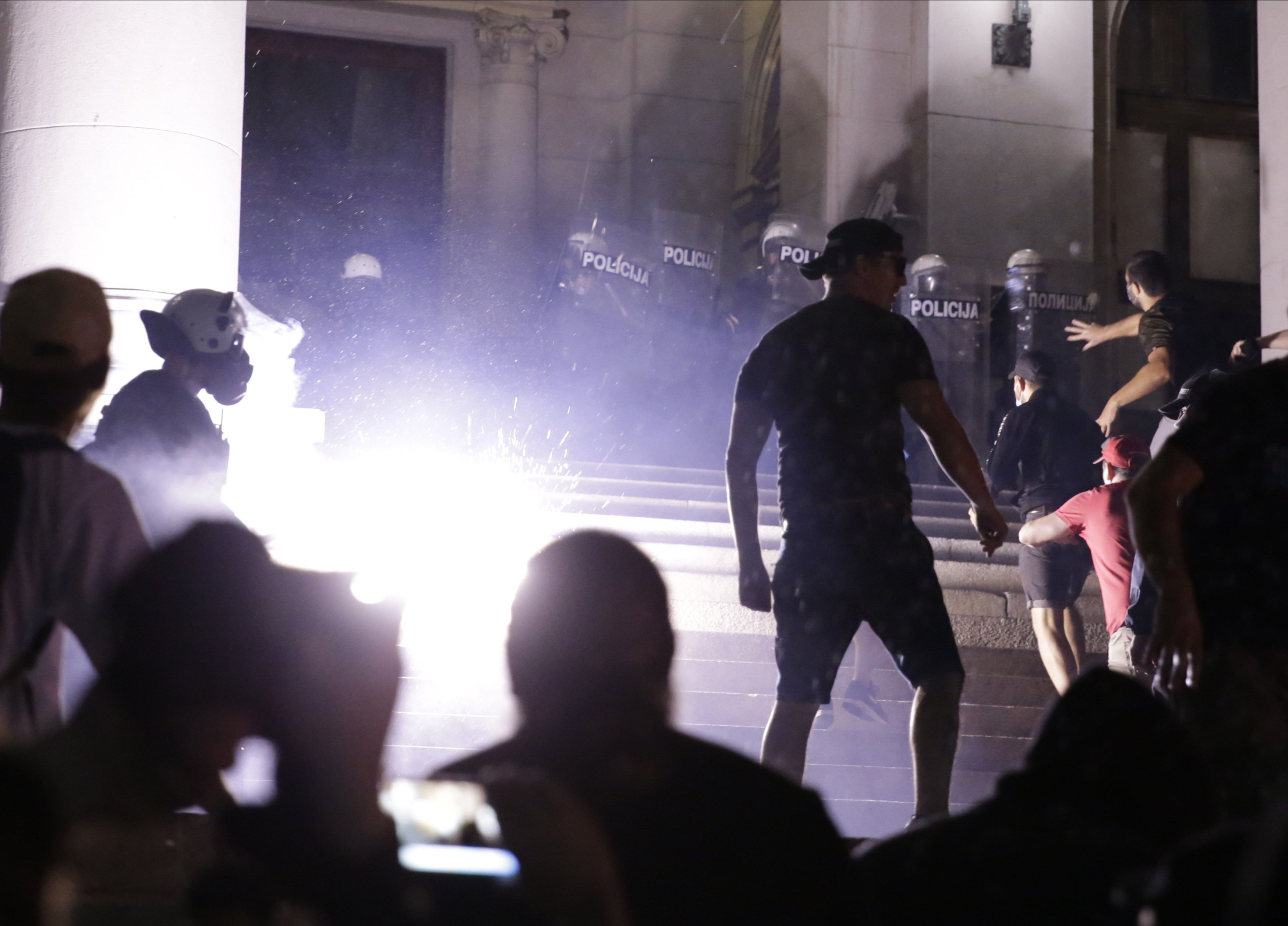 VIDEO. Incidente violente la Belgrad. Oamenii au ieșit în stradă pentru a patra seară la rând