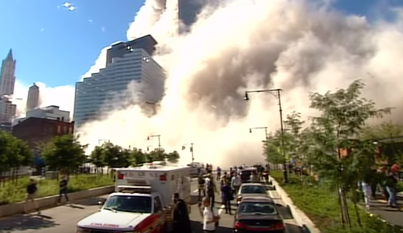 Videoclipul se oprește înainte ca turnurile să se prăbușească.