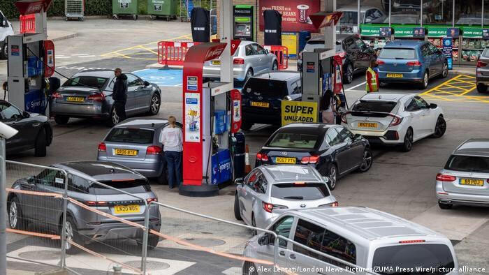 De săptămâna trecută, s-au format cozi lungi în faţa benzinăriilor, confruntate cu probleme de aprovizionare din cauza lipsei şoferilor de camioane (100.000 conform profesioniştilor). Uneori s-au înregistrat altercaţii între şoferi aflaţi la capătul răbdării.