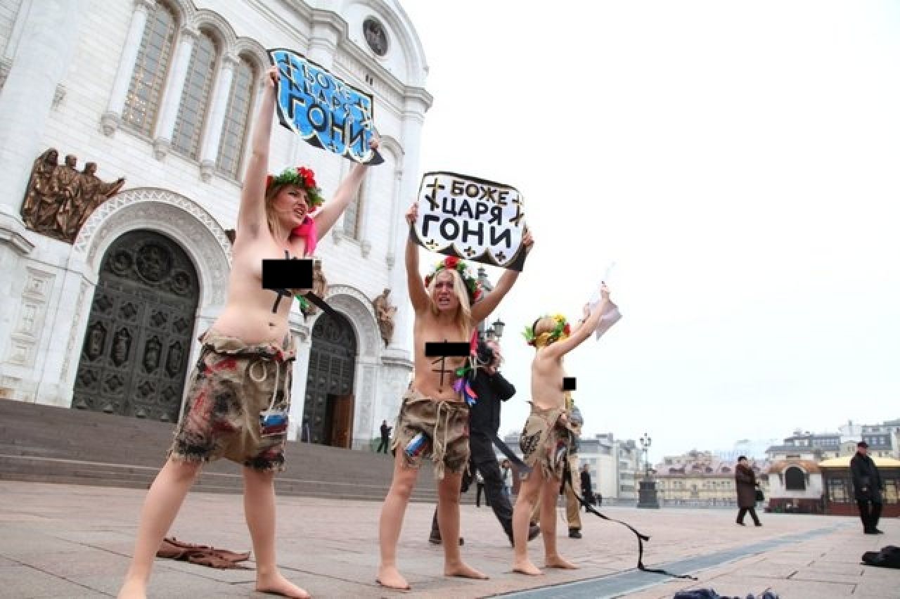 Cateva militante ale organizatiei FEMEN au prostestat vineri, la Moscova, in sanii goi, in fata Catedralei Iisus Mantuitorul. Ele erau nemultumite de rezultatele alegerilor parlamentare din 4 decembrie din Rusia.