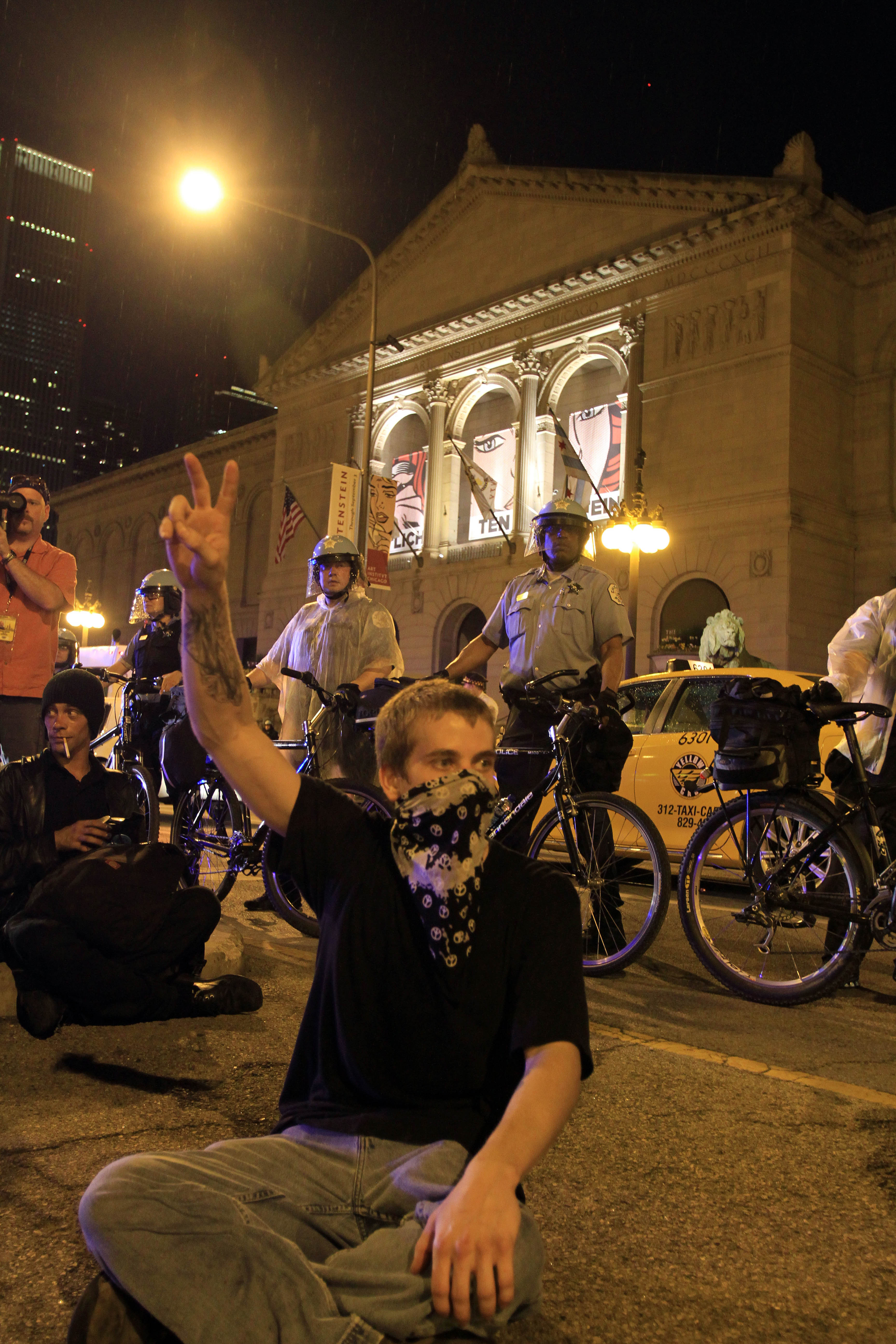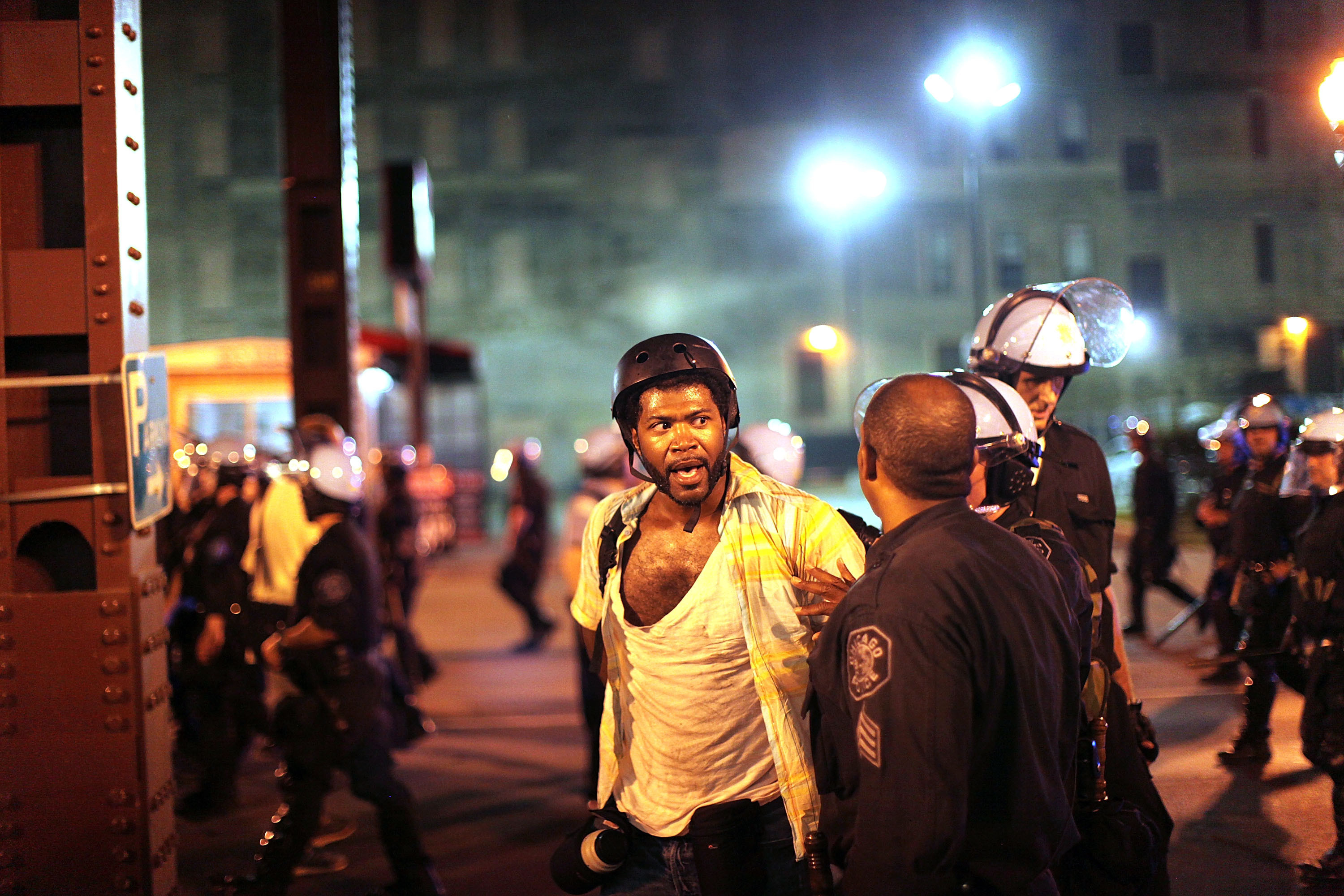 Politia din Chicago se astepta ca protestul sa devina incins, dupa ce a primit informatii ca un grup anarhist isi va face aparitia.