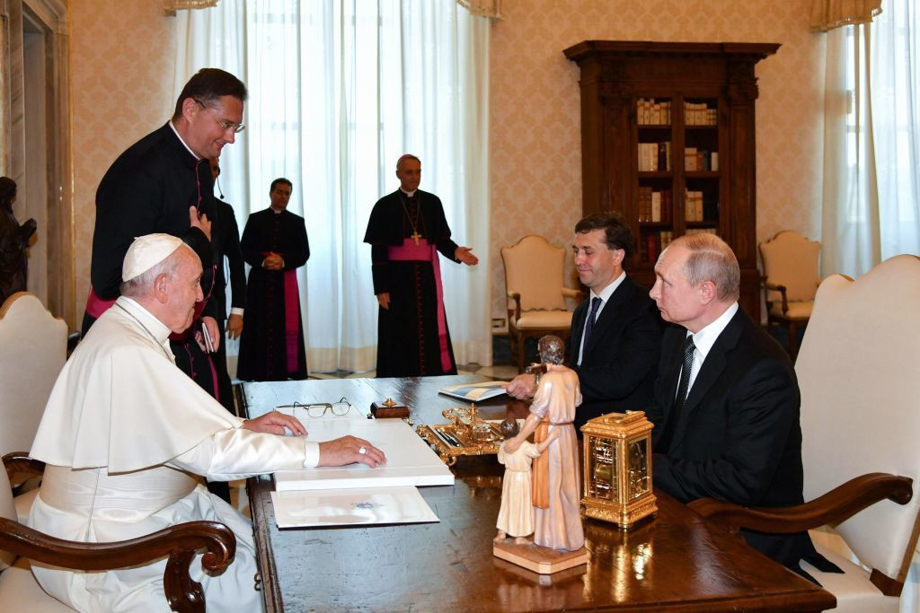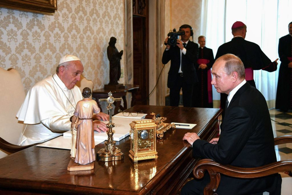 Liderul de la Kremlin a fost primit de Papă la începutul unei vizite de 10 ore în Italia, unde are programat şi un dialog cu omologul său, Sergio Mattarella, şi cu premierul Giuseppe Conte, alături de care va susţine şi o conferinţă de presă comună. În cursul serii, după un dineu în onoarea sa, Putin urmează să se întoarcă la Moscova.