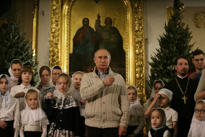 De regulă, Putin sărbătoreşte Crăciunul în afara Moscovei, iar de Paşte merge de obicei la Catedrala Hristos Mântuitorul. Cu toate acestea, anul trecut a participat la o slujbă ortodoxă de Crăciun în timpul nopţii la Biserica Sfântul Gheorghe Învingătorul de pe Dealul Poklonnaya din Moscova.