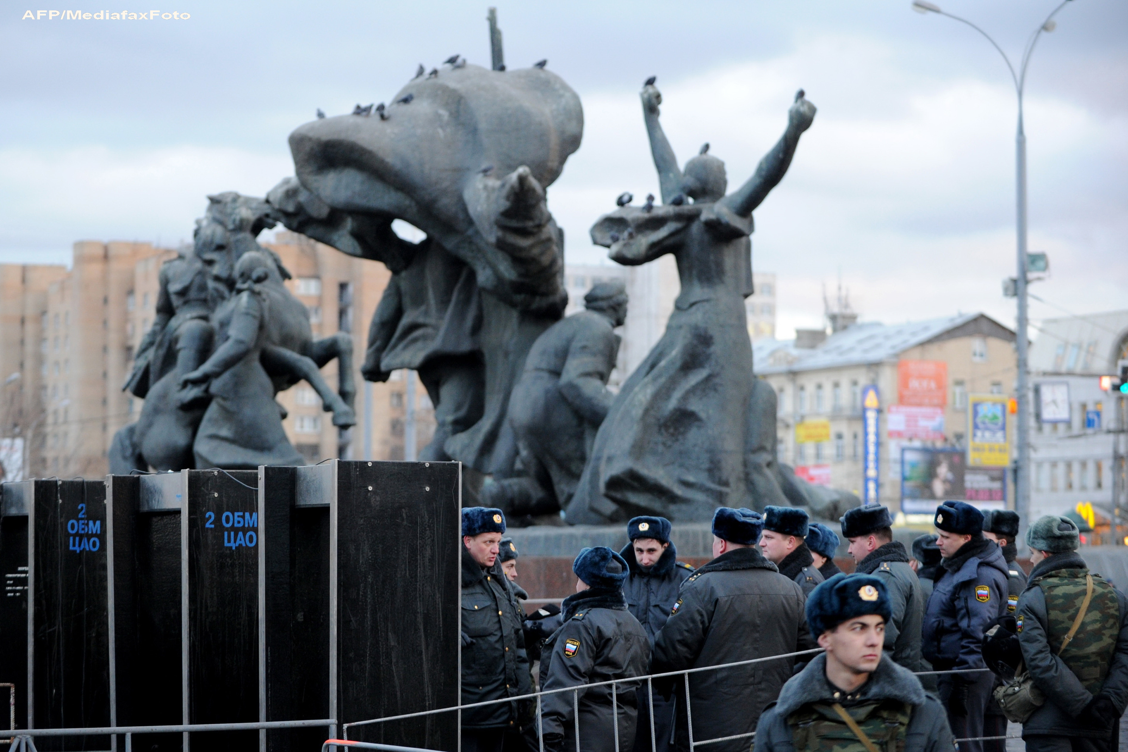 Deocamdata, scutierii desfasurati masiv pe strazile Moscovei si ale altor mari orase, s-au marginit sa-i urce in dube pe cei mai agitati manifestanti si sa-i supravegheze pe restul. Poate si datorita multimii de jurnalisti, amestecati printre protestatari. Printre manifestanti s-au aflat la un moment dat si doi fosti prim ministri - Boris Nemtov si Mihail Kasianov.