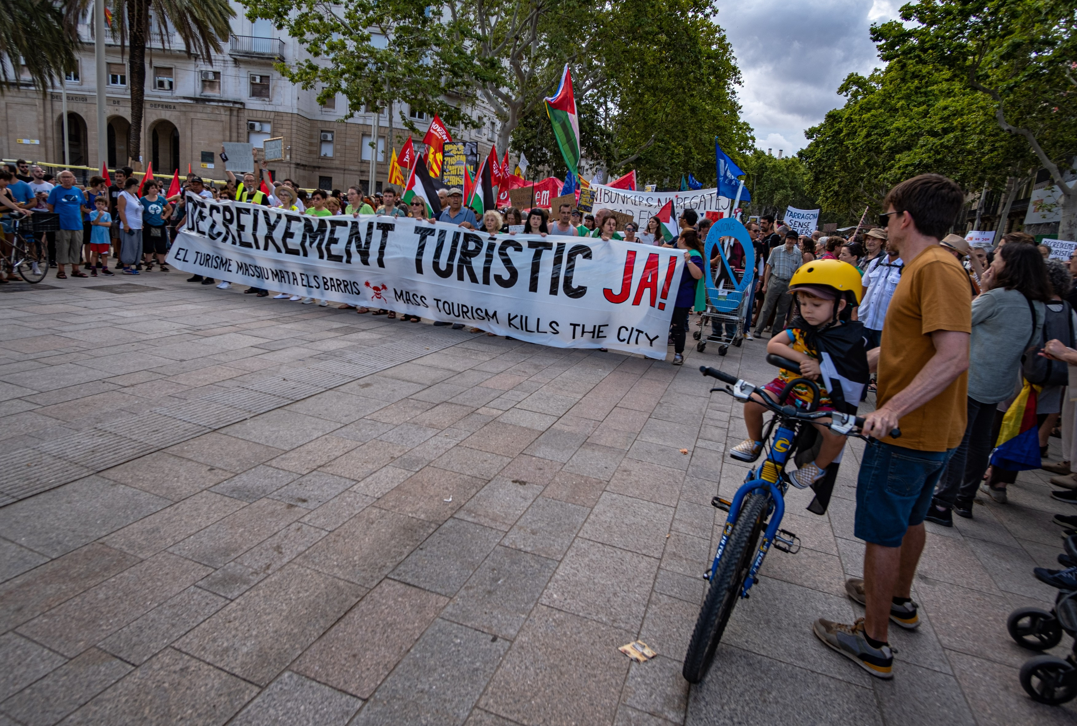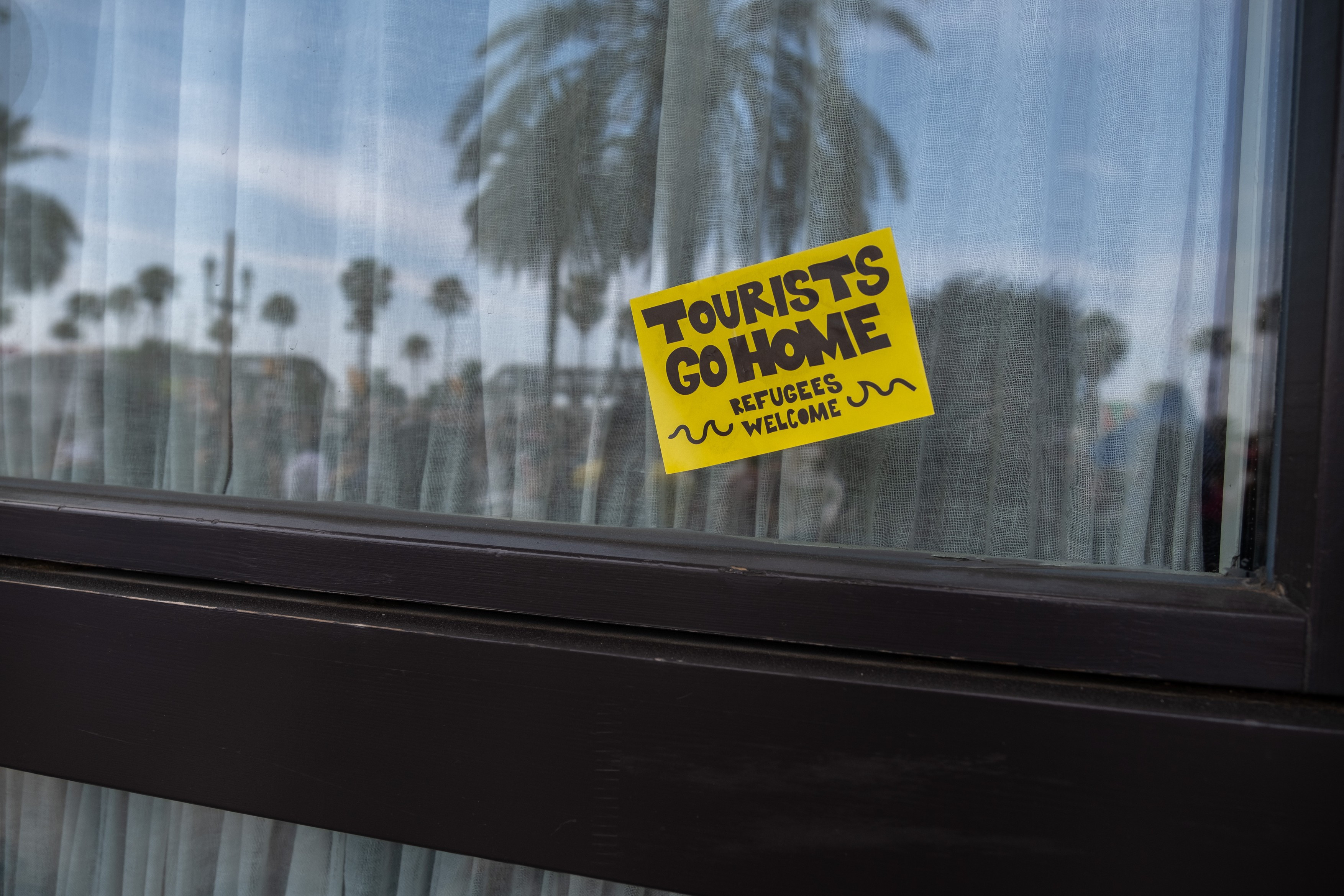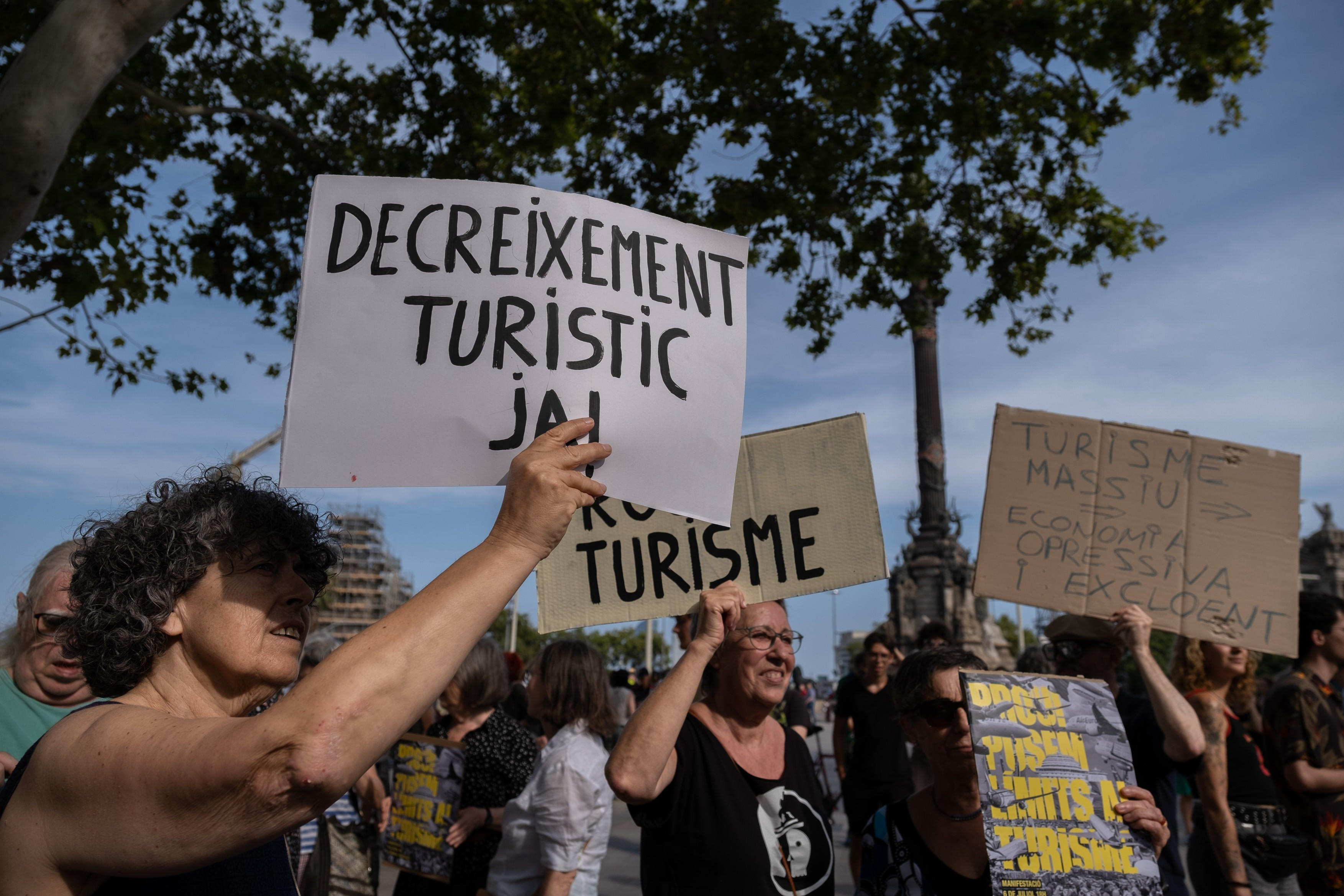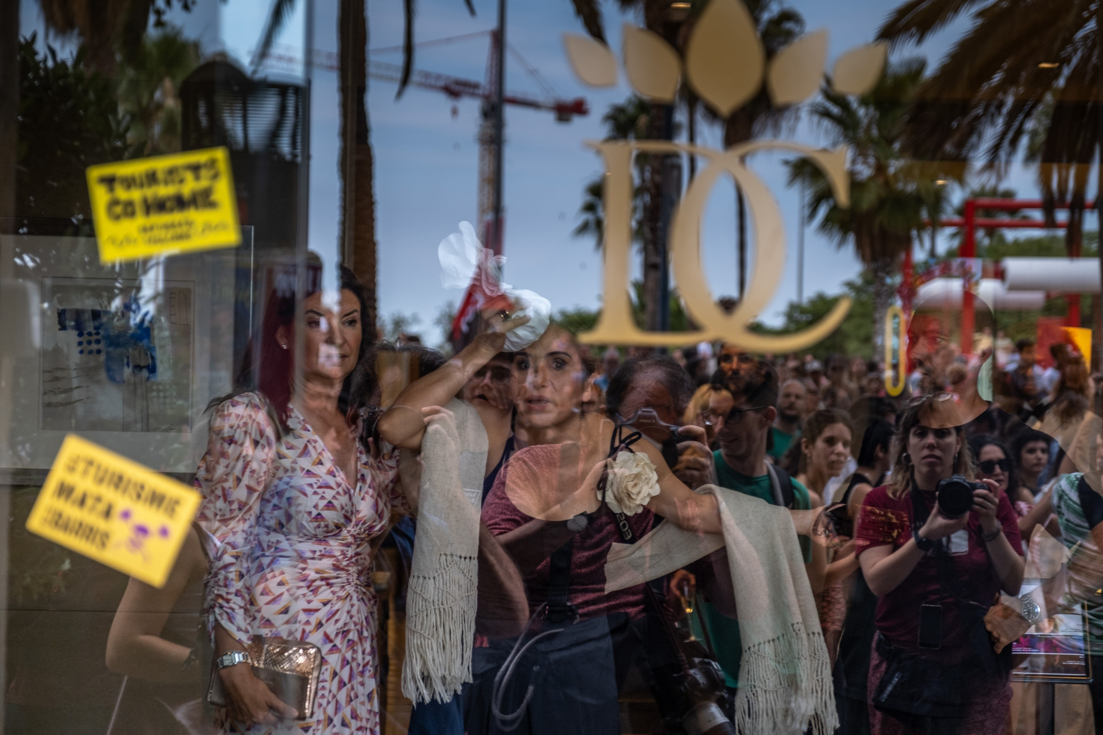 În spatele unui banner pe care scria "Reduceţi turismul acum!", manifestanţii au defilat scandând "Afară cu turiştii din cartierele noastre", oprindu-se în faţa unor hoteluri, spre surprinderea vizitatorilor.