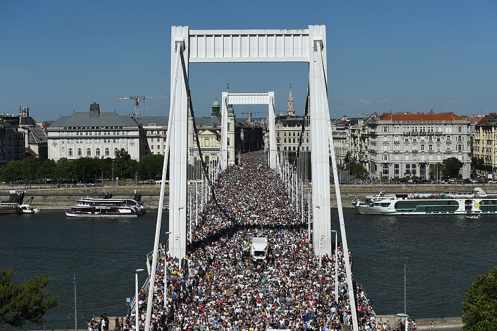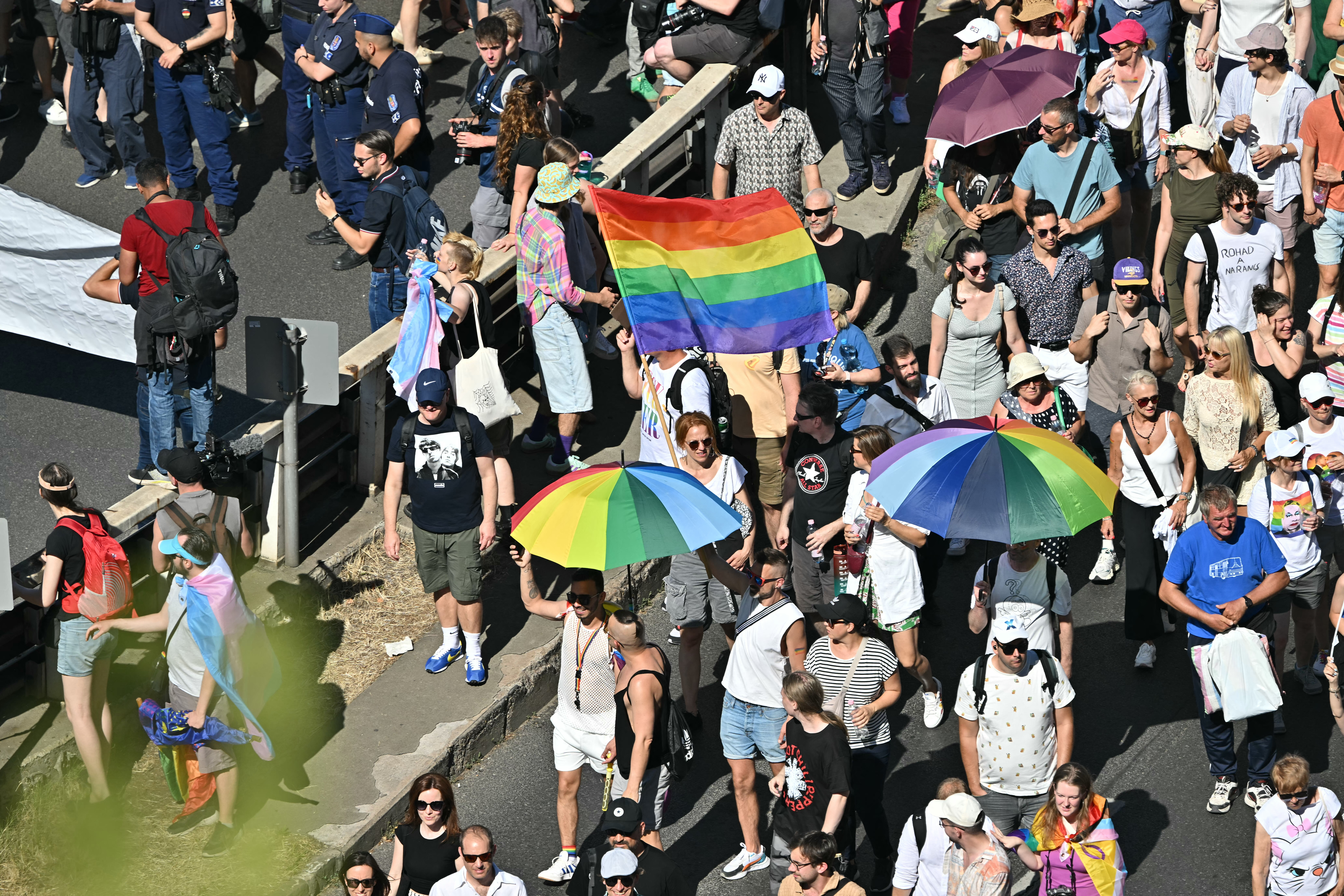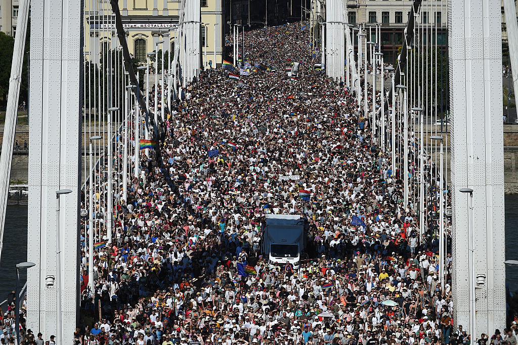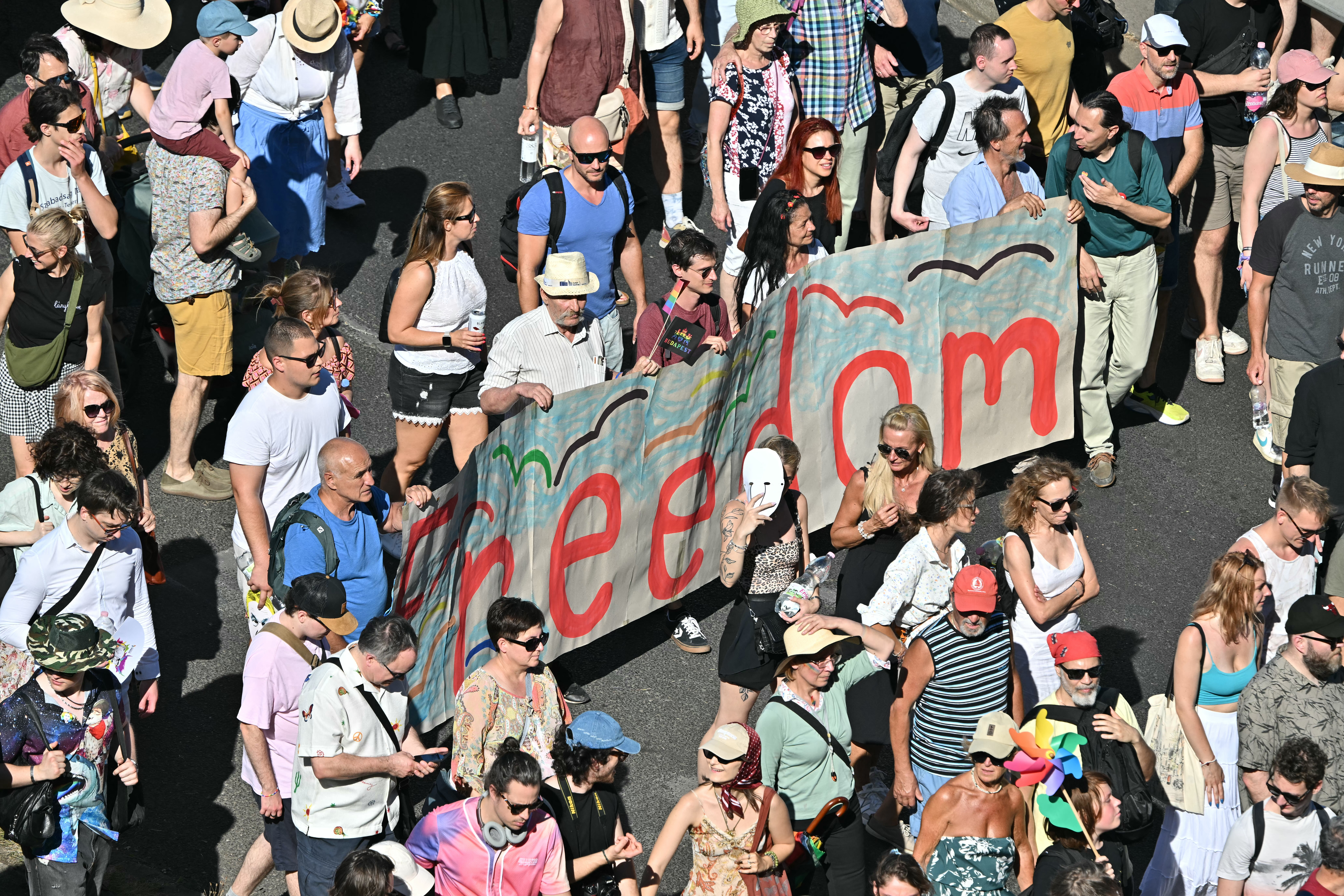 Deplasându-se prin capitală în căldura sufocantă, demonstranții au purtat pancarte pe care scria "Solidaritate cu Budapesta Pride" și au fluturat pancarte cu ilustrații tăiate ale premierului Viktor Orbán.