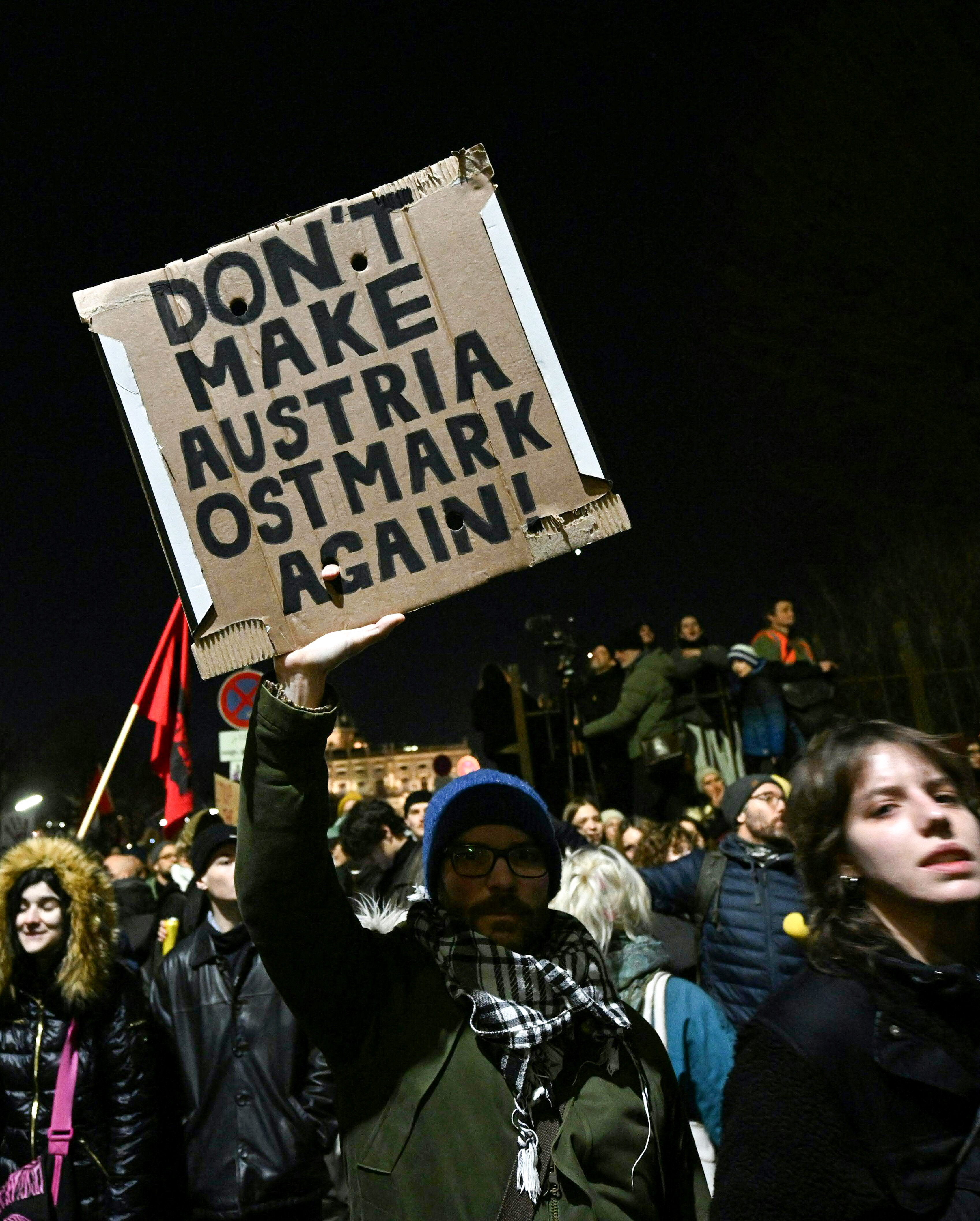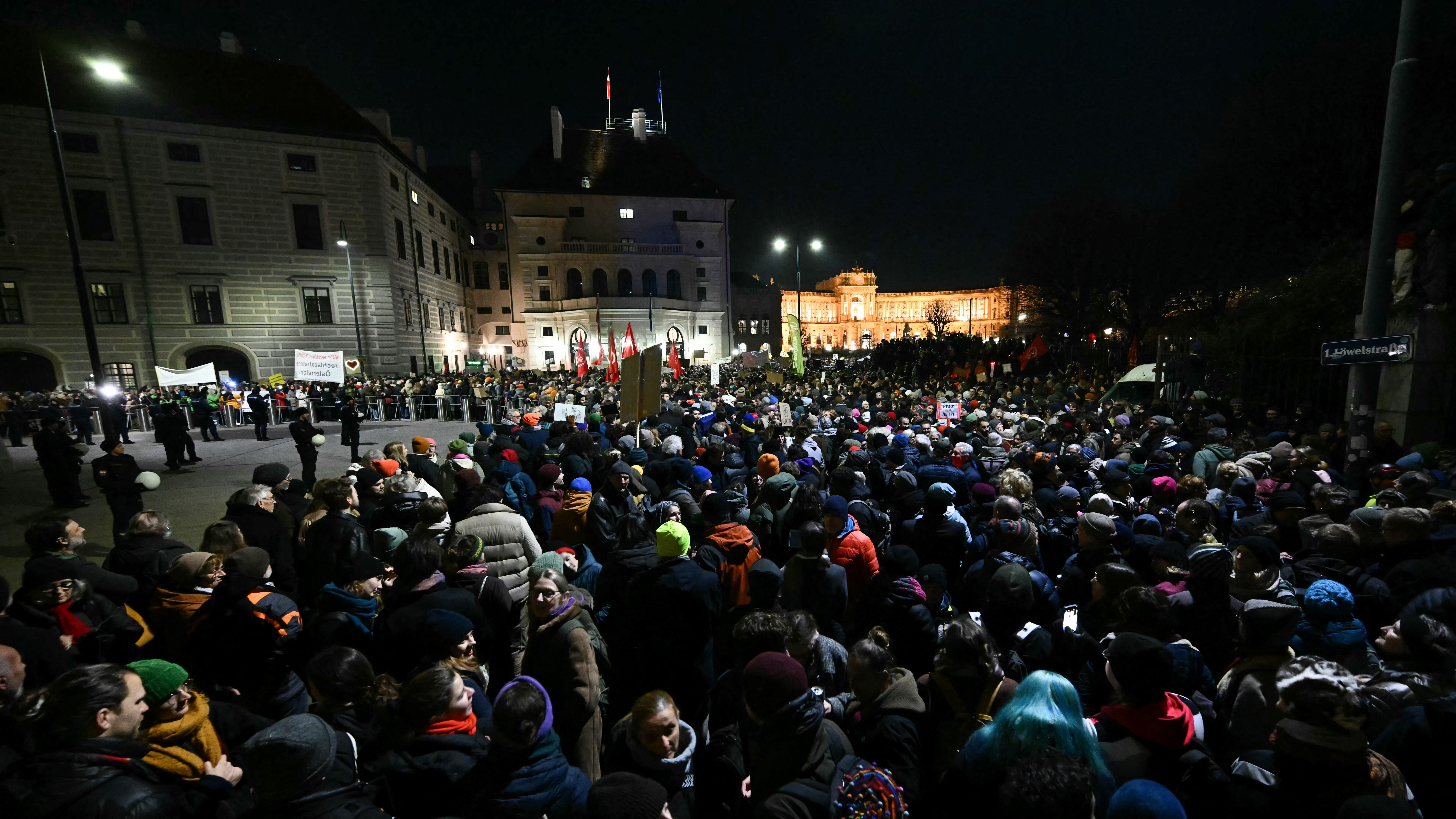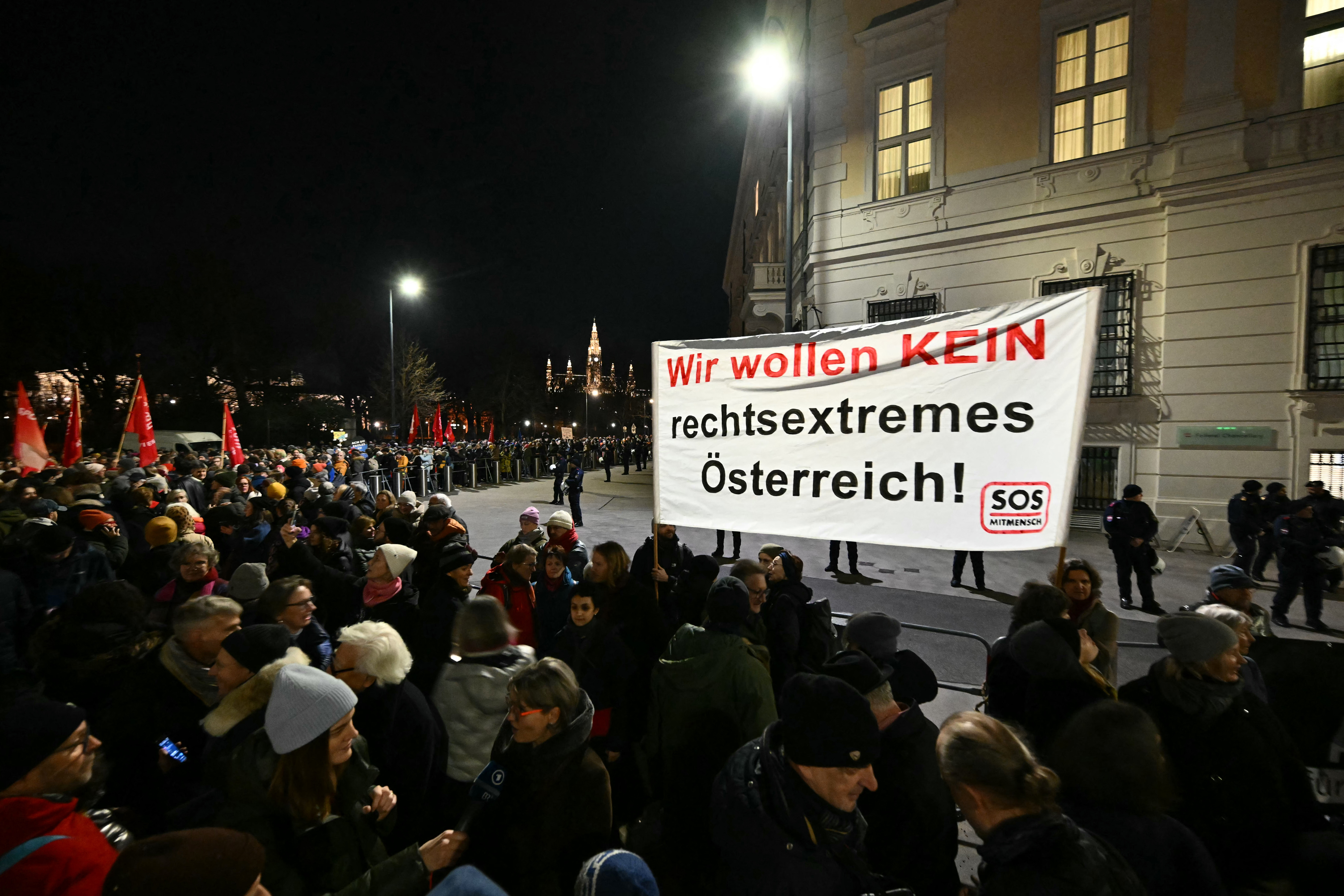 „Nu vrem un cancelar de extremă dreapta şi de aceea suntem astăzi aici”, a declarat pentru AFP Alexander Pollack, purtătorul de cuvânt al ONG-ului antirasism SOS Mitmensch, făcând referire la „o ameninţare la adresa drepturilor omului şi a democraţiei”.