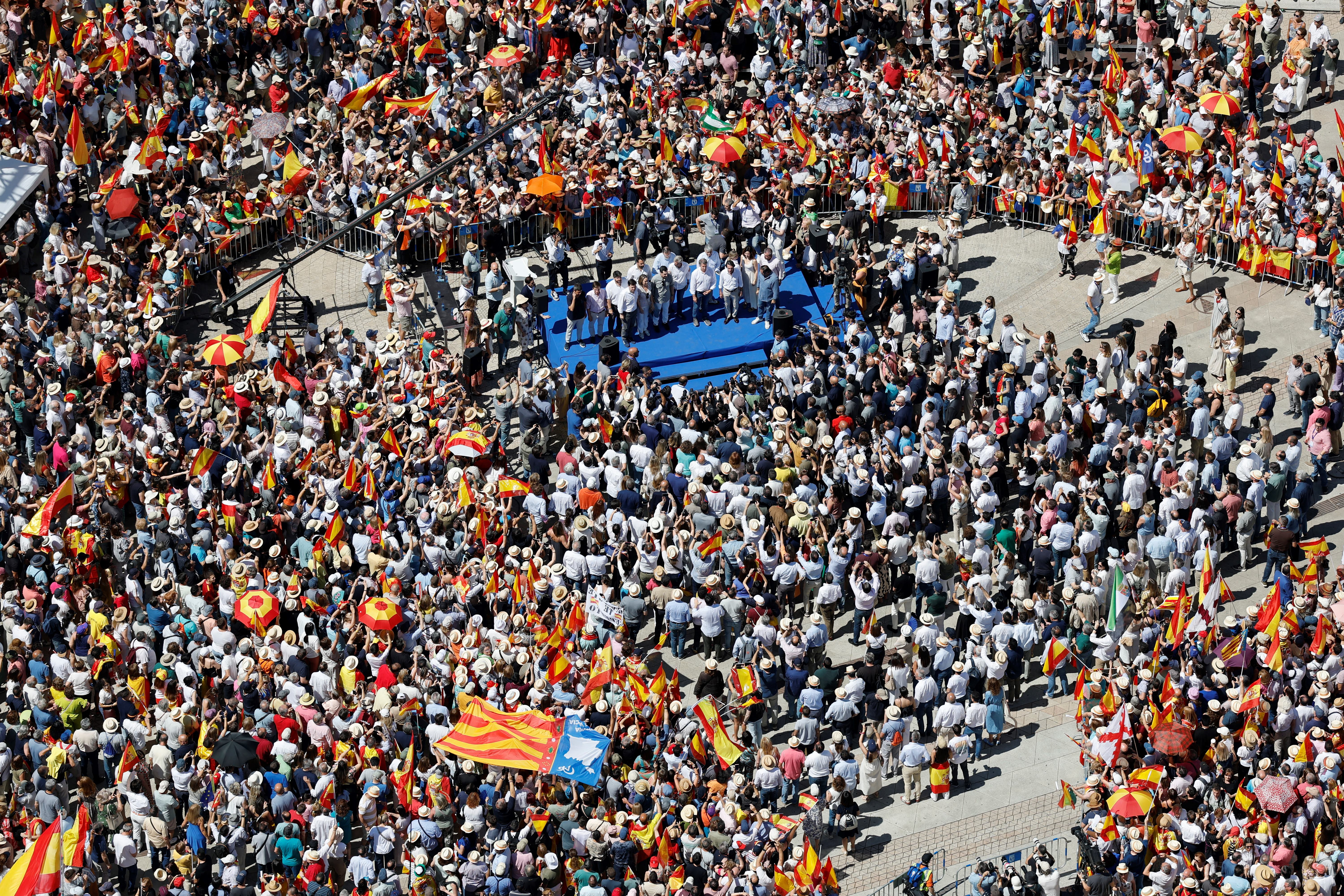 "Acest guvern a nenorocit totul - politica, instituţiile statului, separarea puterilor", a spus el la miting, înainte de a-l îndemna pe Pedro Sanchez să se "supună democraţiei" şi să convoace alegeri anticipate.