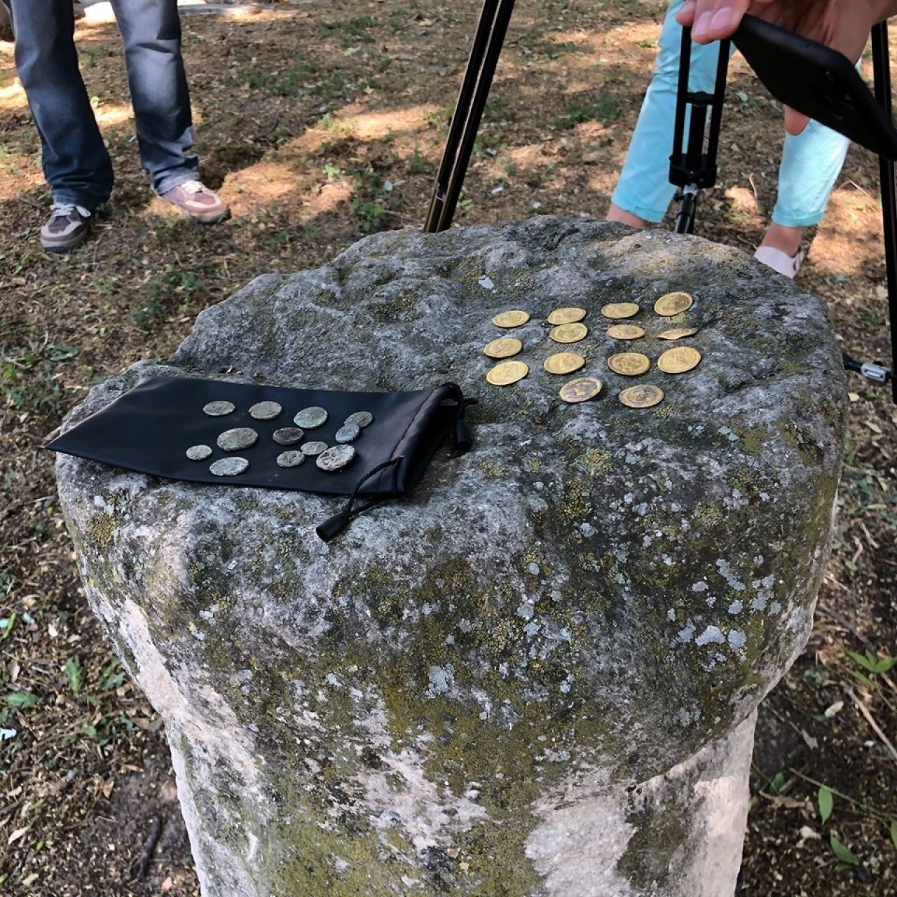 Monedele au fost descoperite în cadrul unor săpături arheologice efectuate la câţiva metri de Muzeul Mozaicurilor din acest oraş aflat la 400 kilometri distanţă de Sofia. În aceeaşi zonă au fost descoperite în 1929 aproape 100.000 de monede din argint din epoca împăratului roman Marc Antoniu.