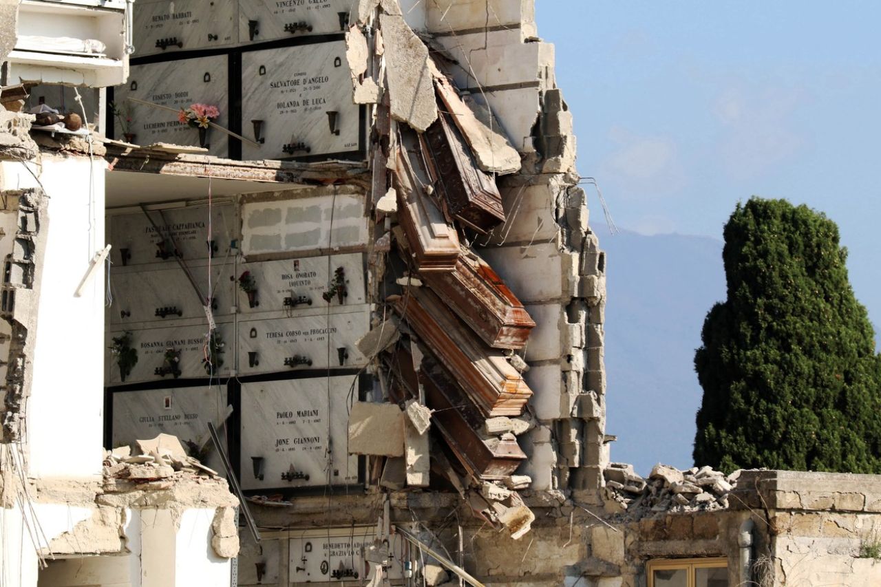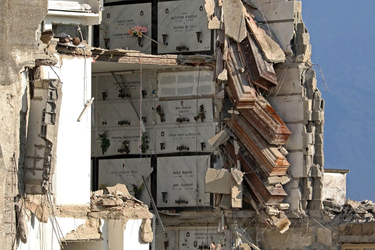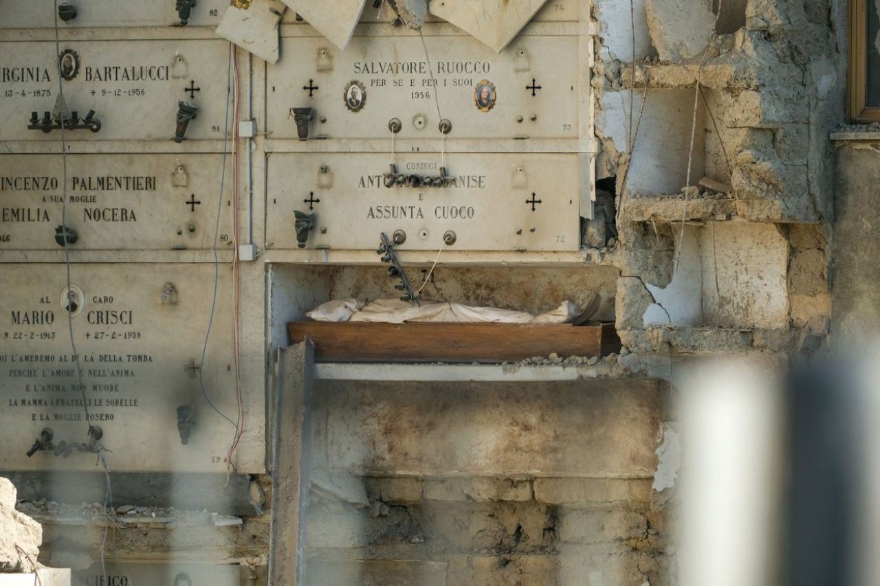 Zeci de sicrie, suspendate în aer după ce o clădire dintr-un cimitir din Italia s-a prăbușit | GALERIE FOTO
