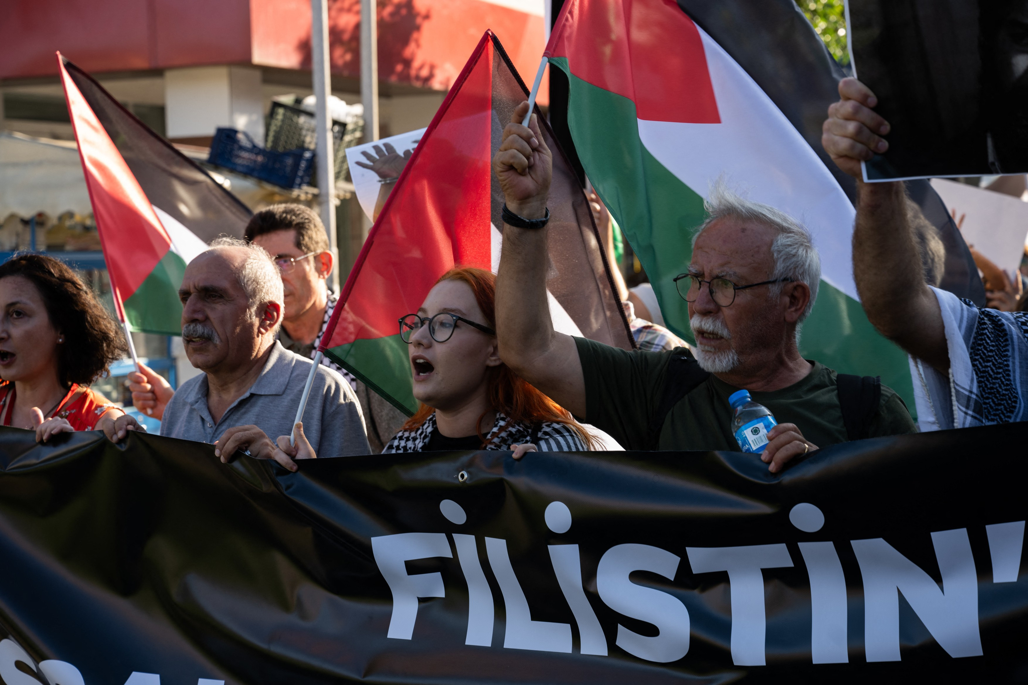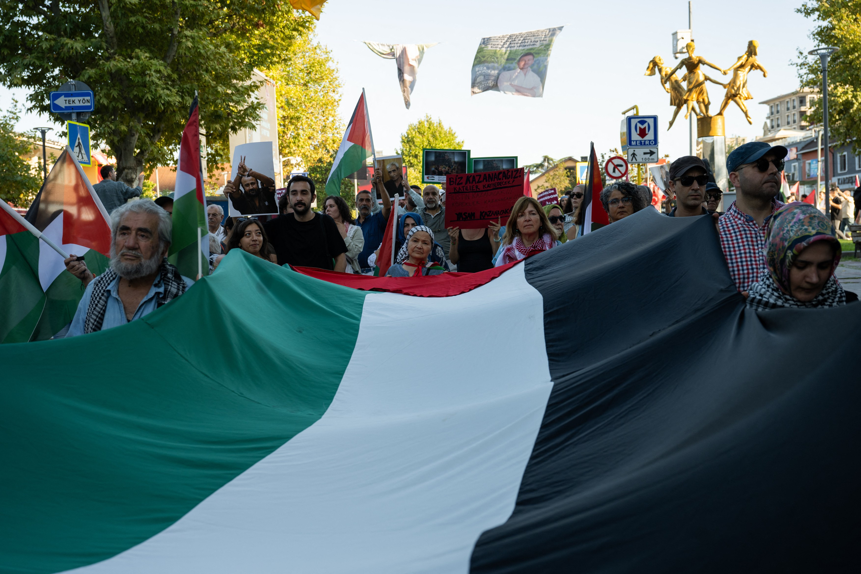 "Israel asasin, afară din Palestina" sau "rezistenţa continuă, trăiască Hamas" au fost câteva dintre scandările celor prezenţi, potrivit postului de televiziune turc NTV.